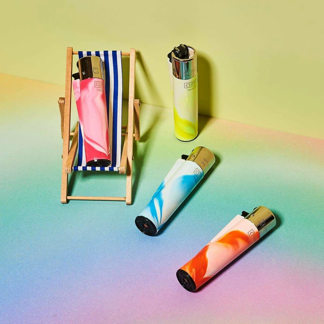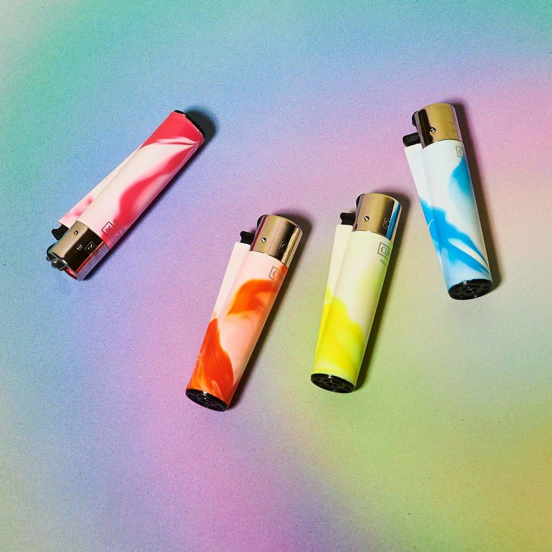 Clipper Lighters inΒ Nebula wrap are a moment all their own. Neon fluorescent colors are wrapped in a white smokey cloud, producing a soothing marbled effect. Known for their long lasting durability,Β ClippersΒ have the look of a disposable pocket lighter but are reusable. Plus, eachΒ NebulaΒ lighter comes poker that you can use to help pack on the go rolls.