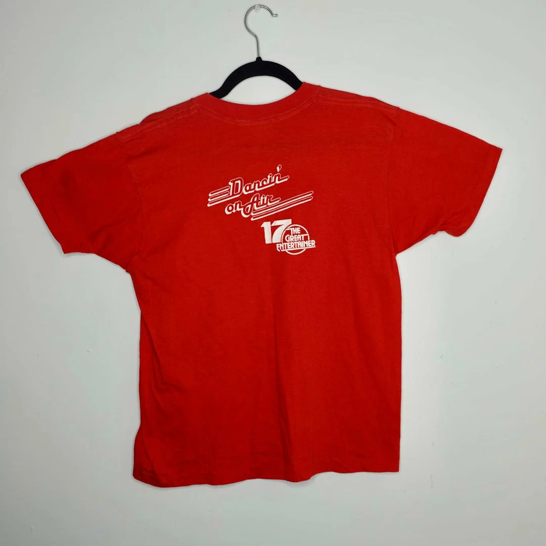 Straight out of the 80s! This vibrant Coca-Cola read T-shirt was originally a backstage promo tee for the Philadelphia based show, Dancinโ on Air. Fun fact:ย Kelly Ripa was even one the house dancers! Front of shirt reads, โCoke is it!โ Back side displaying the Dancinโ on Air logo and network affiliate. Features single stitch and is superrr soft.