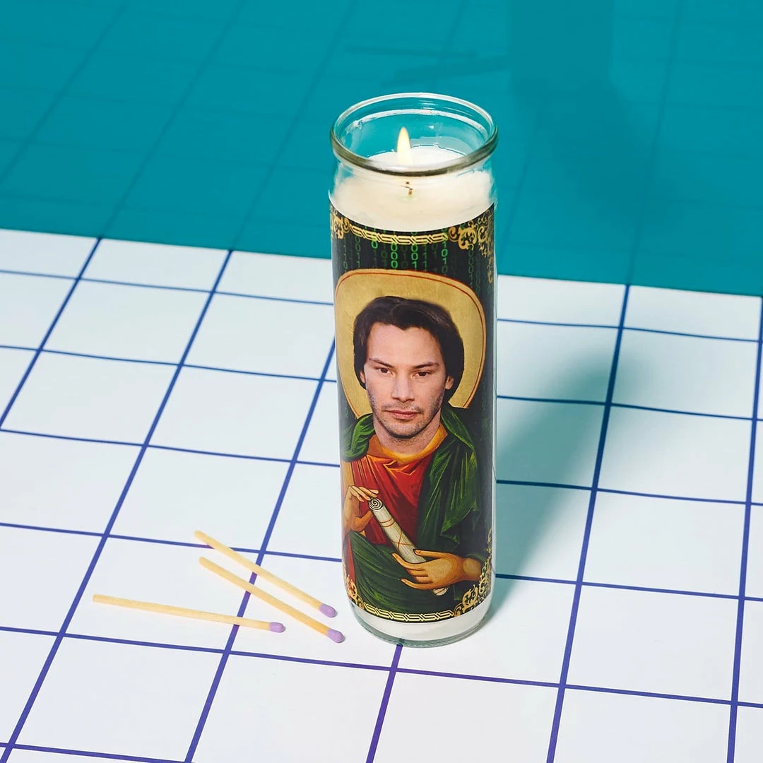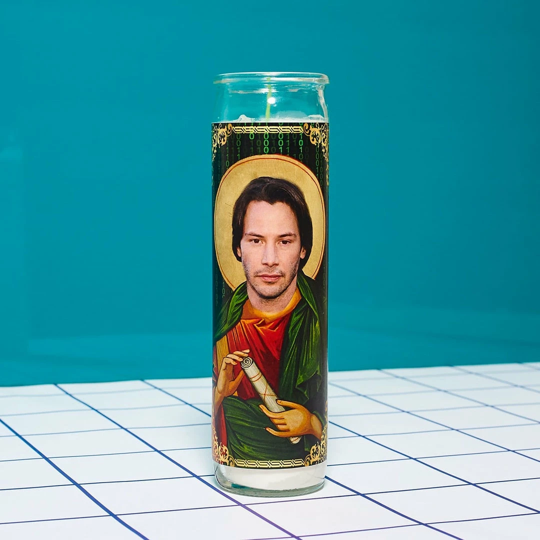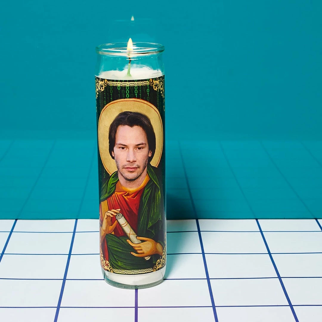 Keanu Reeves as a pillar candle is EVERYTHING. Pray to Keanu, patron saint of the Matrix, yourself, or give him to your best buddy who can’t get enough Bill & Ted.Β
