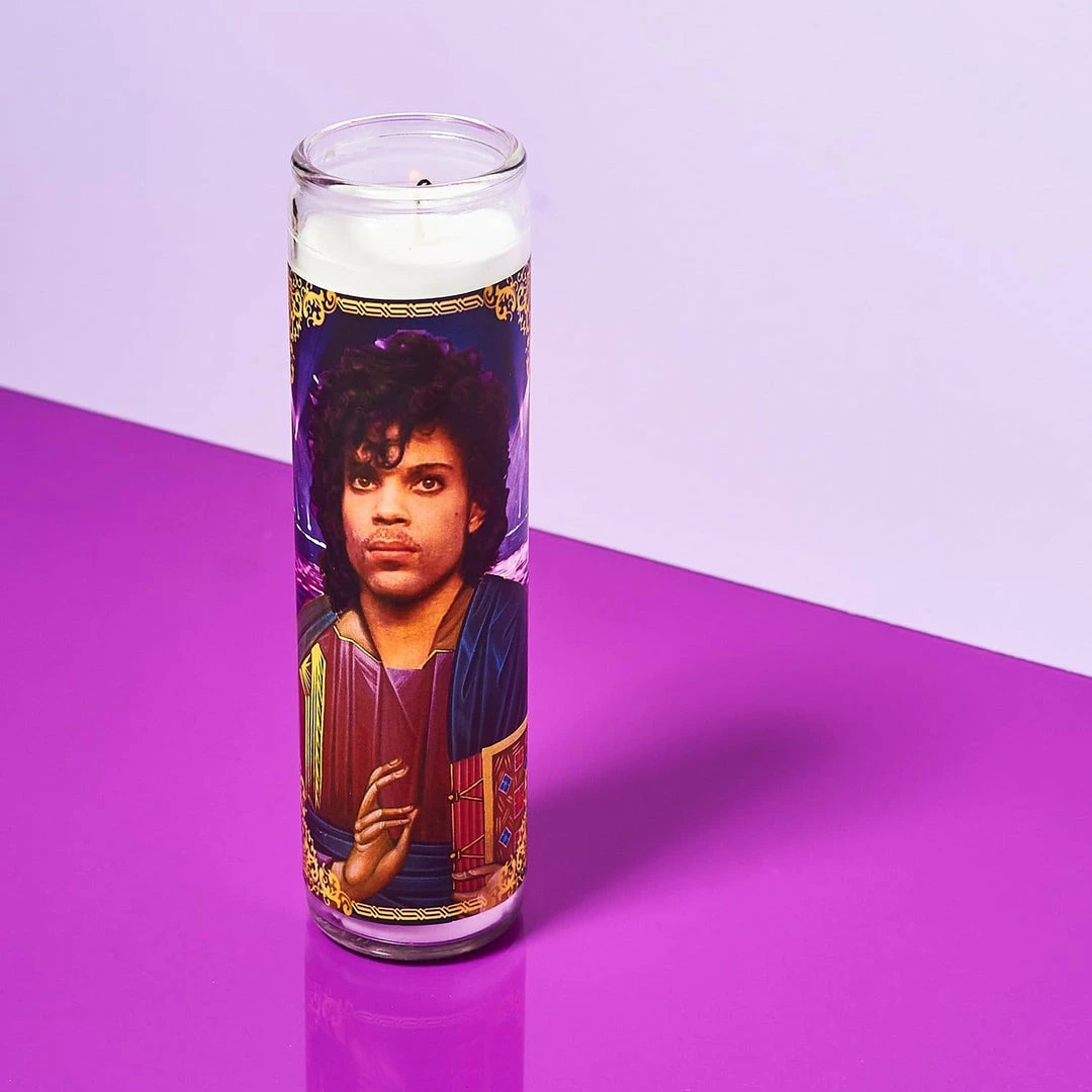 Prince will forever have special place in our hearts and musical history. Light up this saint style Prince candle while your favorite tracks play in the background.ย