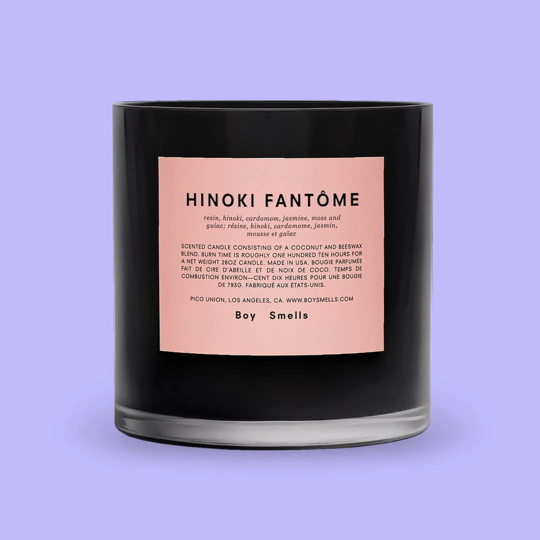 Hinoke Fantome is now burning bigger and brighter for your extra long burning pleasure in 28oz Boy Smells candle Magnums. A resinous aroma of smoking Japanese cypress and jasmine petals. Warm and meditative with an element of earthy spice notes and quiet, fresh moss. An absolute cold-weather necessity to warm and invigorate the nasal senses.