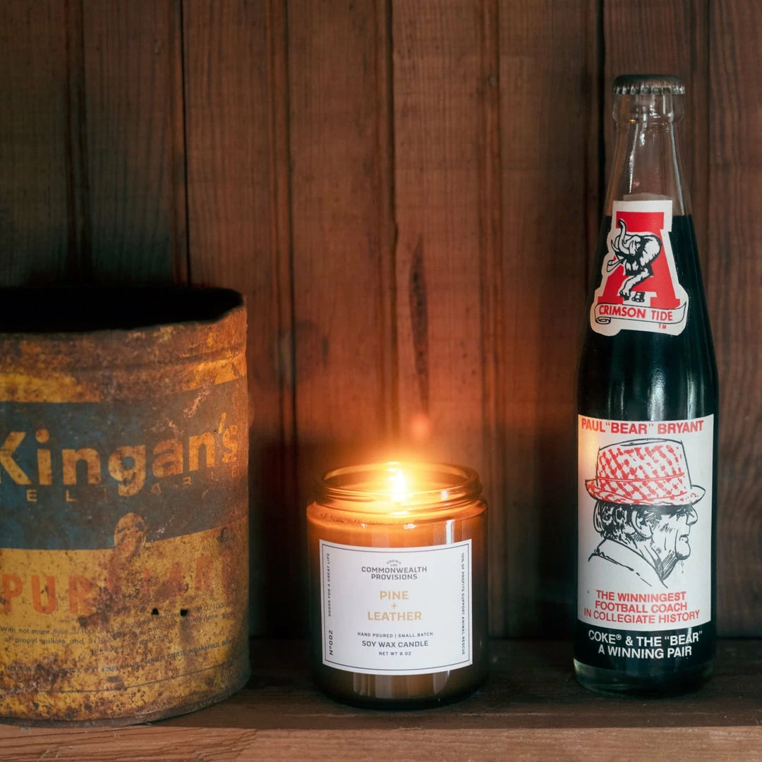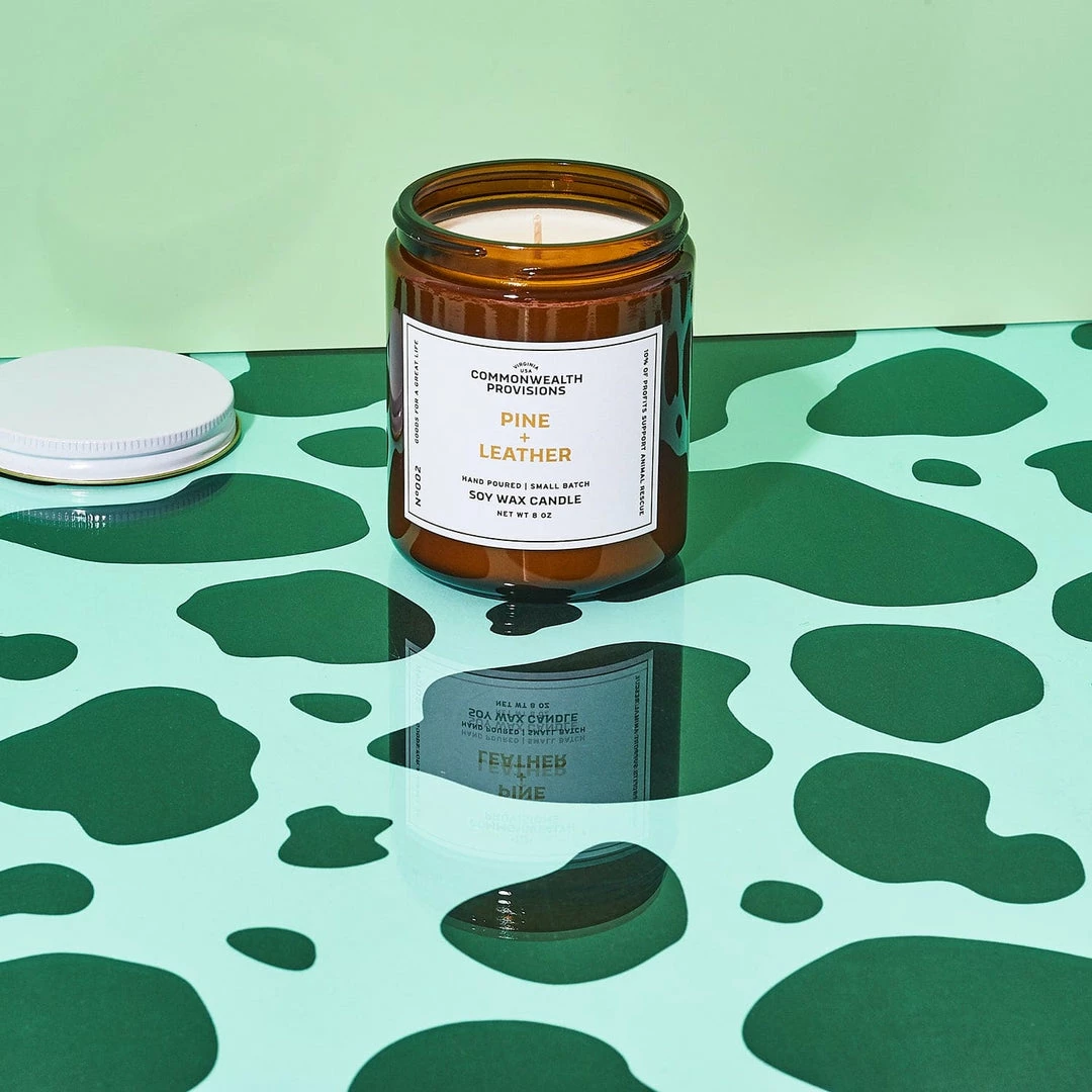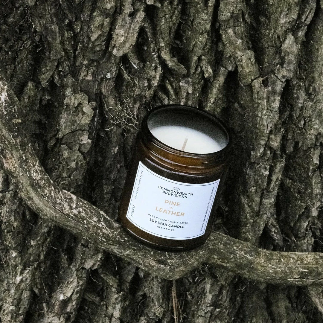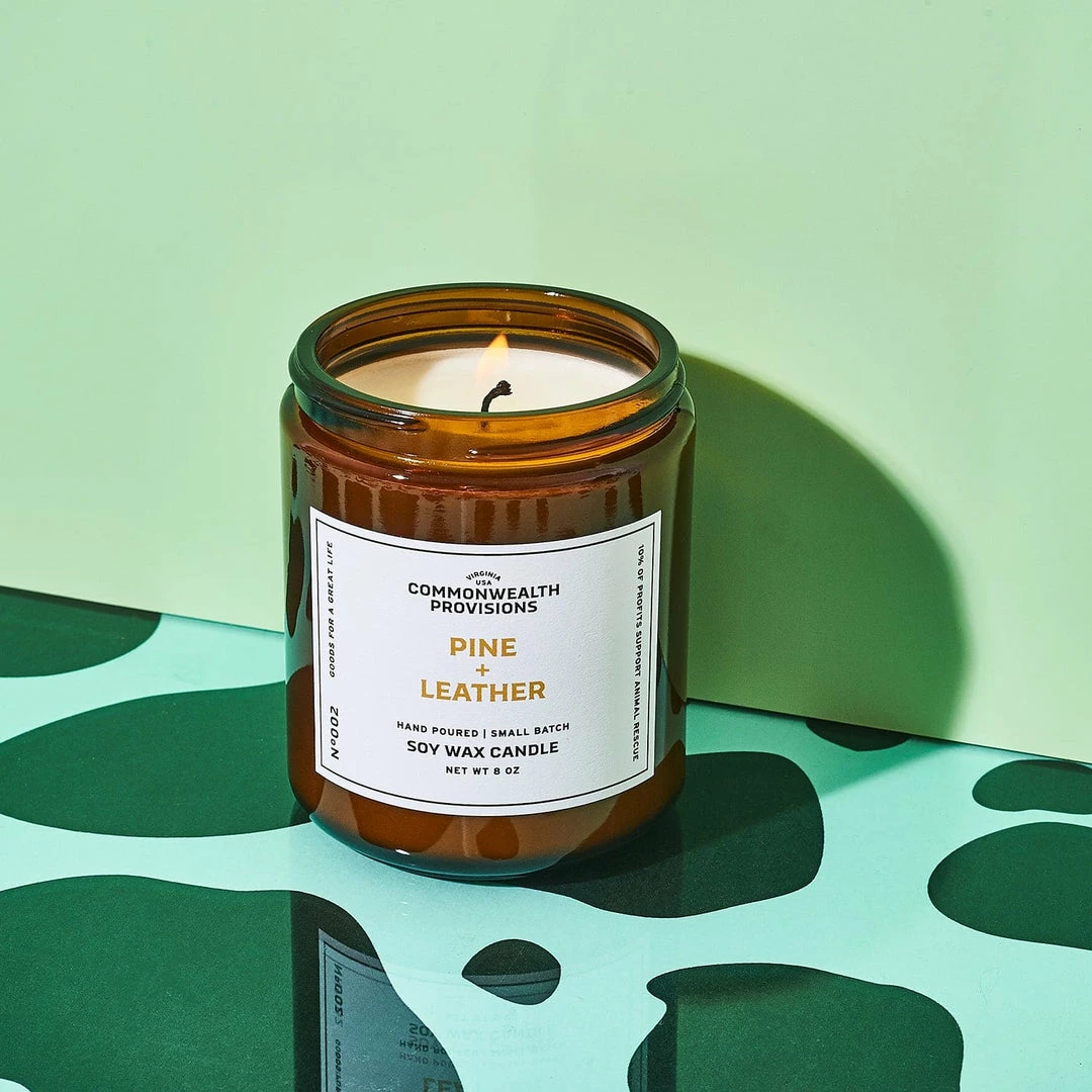 This 8 ounce soy candle from Commonwealth Provisions was made to evoke the nostalgia of worn-in leather on a hike through a pine filled forest. Notes of leather, evergreen, and cypress help recreate that scent and feeling.