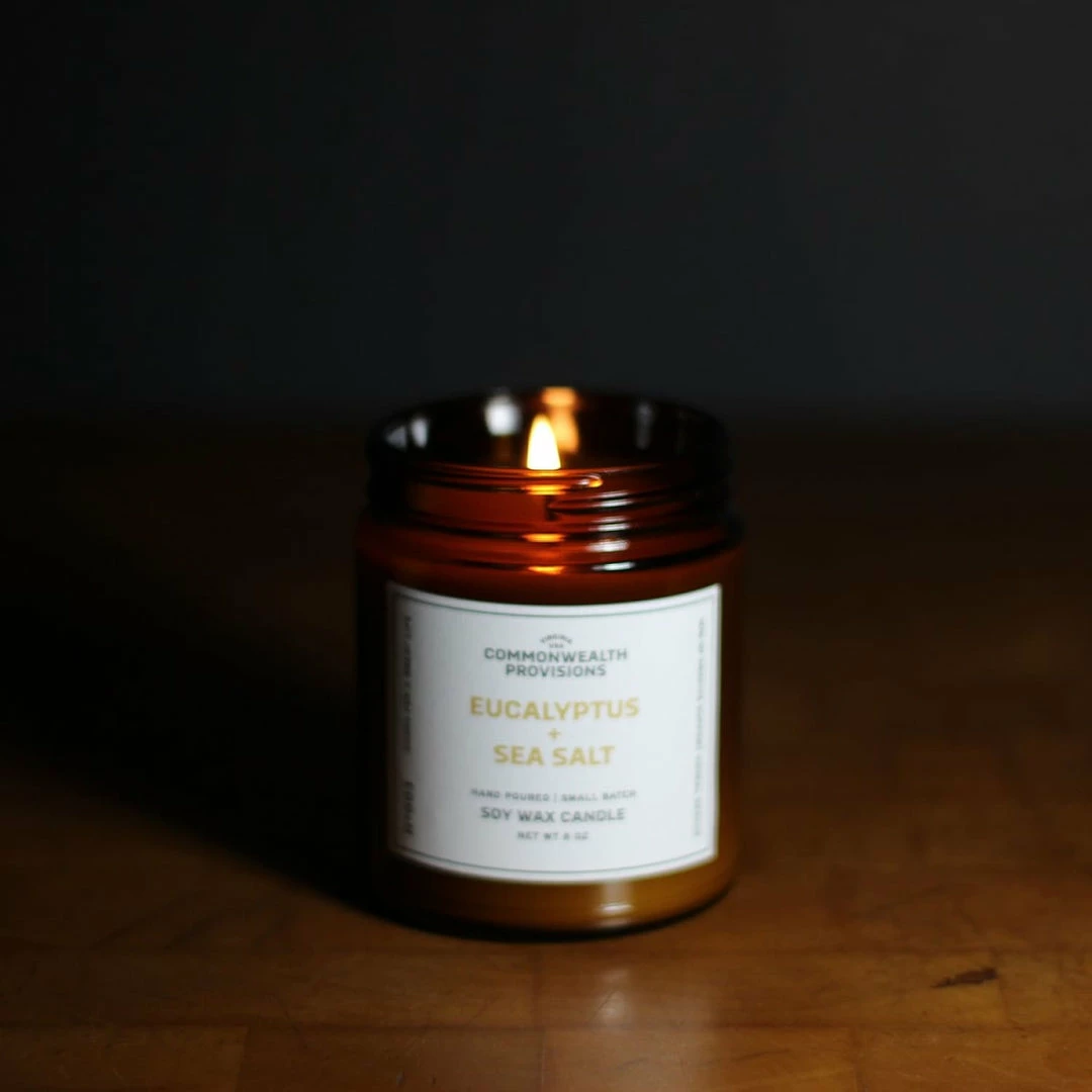 Wind down your day with this 8 ounce soy candle fromย Commonwealth Provisionsย . The calming effect of eucalyptus is paired perfectly with the crisp sea salt scent. Features notes of eucalyptus, ozone,ย mint, andย sea salt.