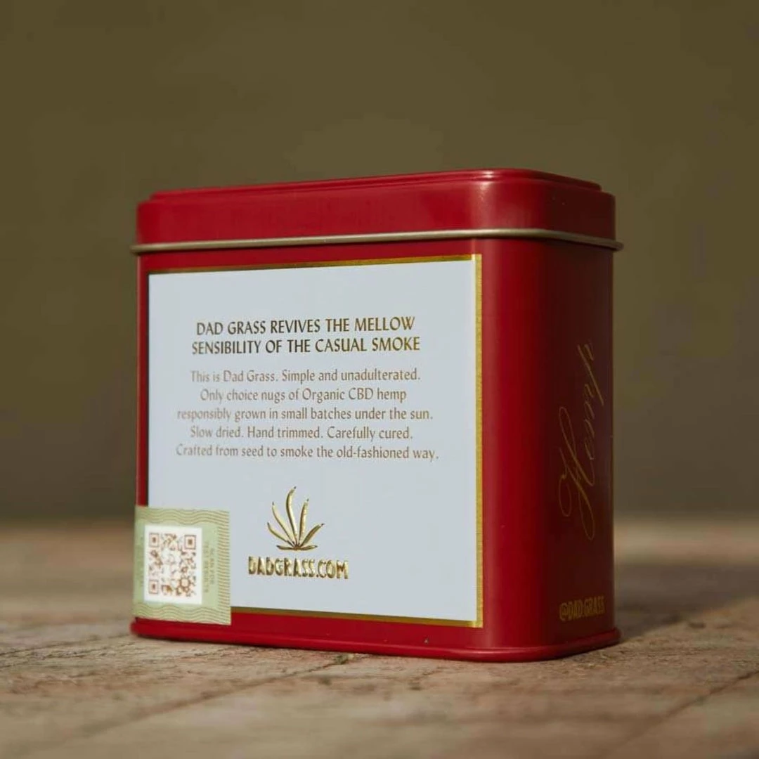 Roll your own with a 1/4 oz (7G) of Dad Grass h*mp C_D flower. Packed and sealed for long-lasting freshness with a 2-way humidity control pack. Each tin contains only the finest 100% Organic h*mp flower, responsibly grown right here in the USA. No additives or pesticides. No nicotine or tobacco. No sticks, stems or seeds. No trim or shake.