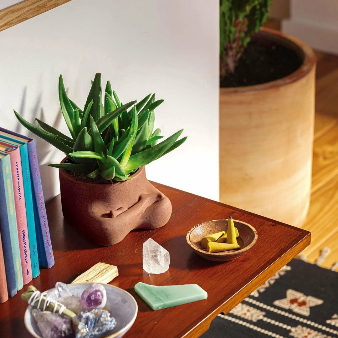 Plant yourself & your plant in a namaste pose. This earthy, ceramic brown planter pot creates a serene vibe.