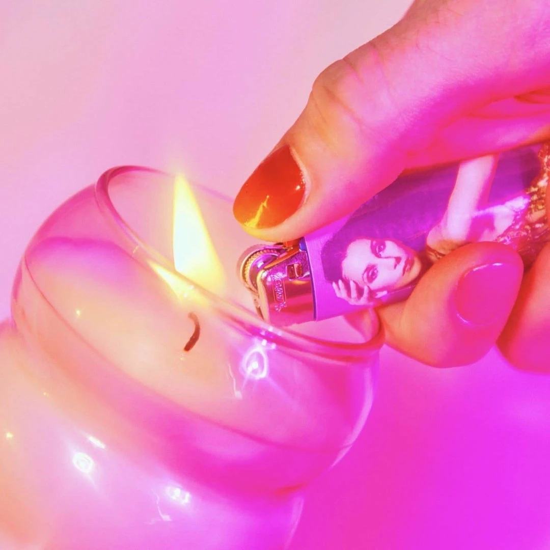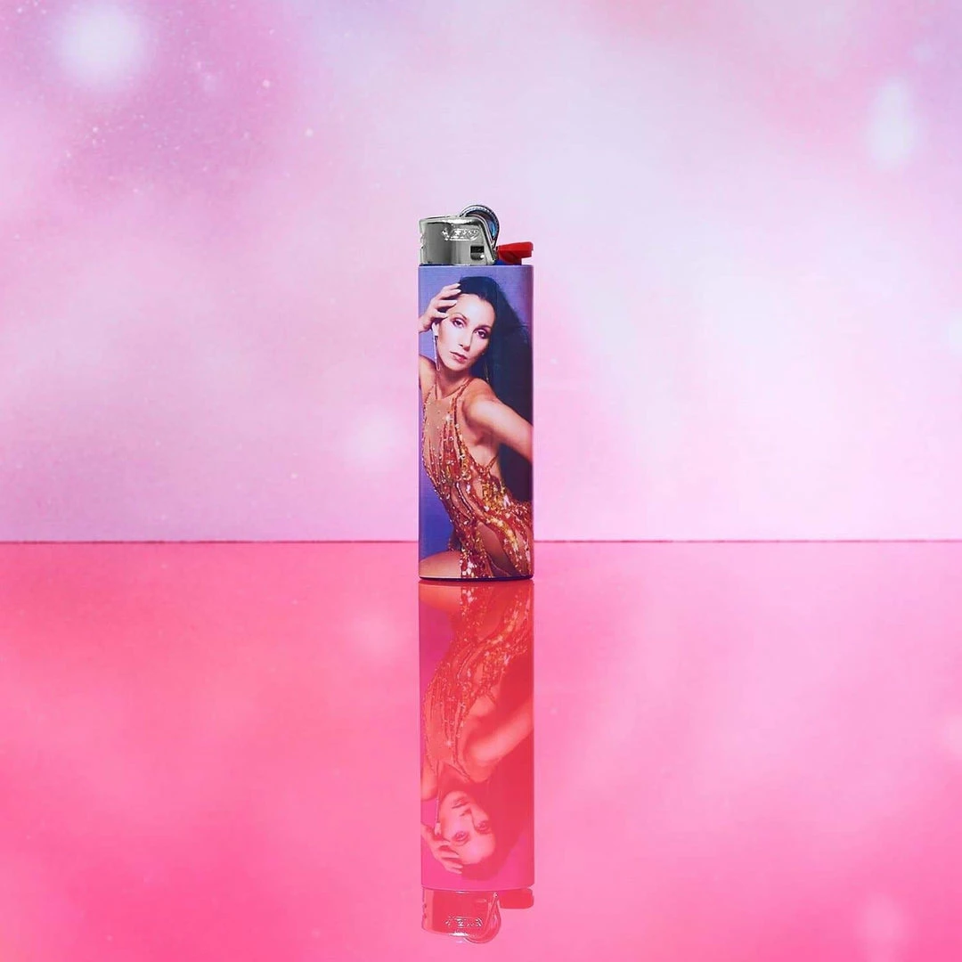 Catching fire over here with this pop star lighter featuring Cher! The living legend coming at you in circa 1978 in an original Bob Mackie flamin’ sequin dress. How appropriate!! The Cher lighter has been an in store fave and pairs perfectly with our Cher prayer candle.