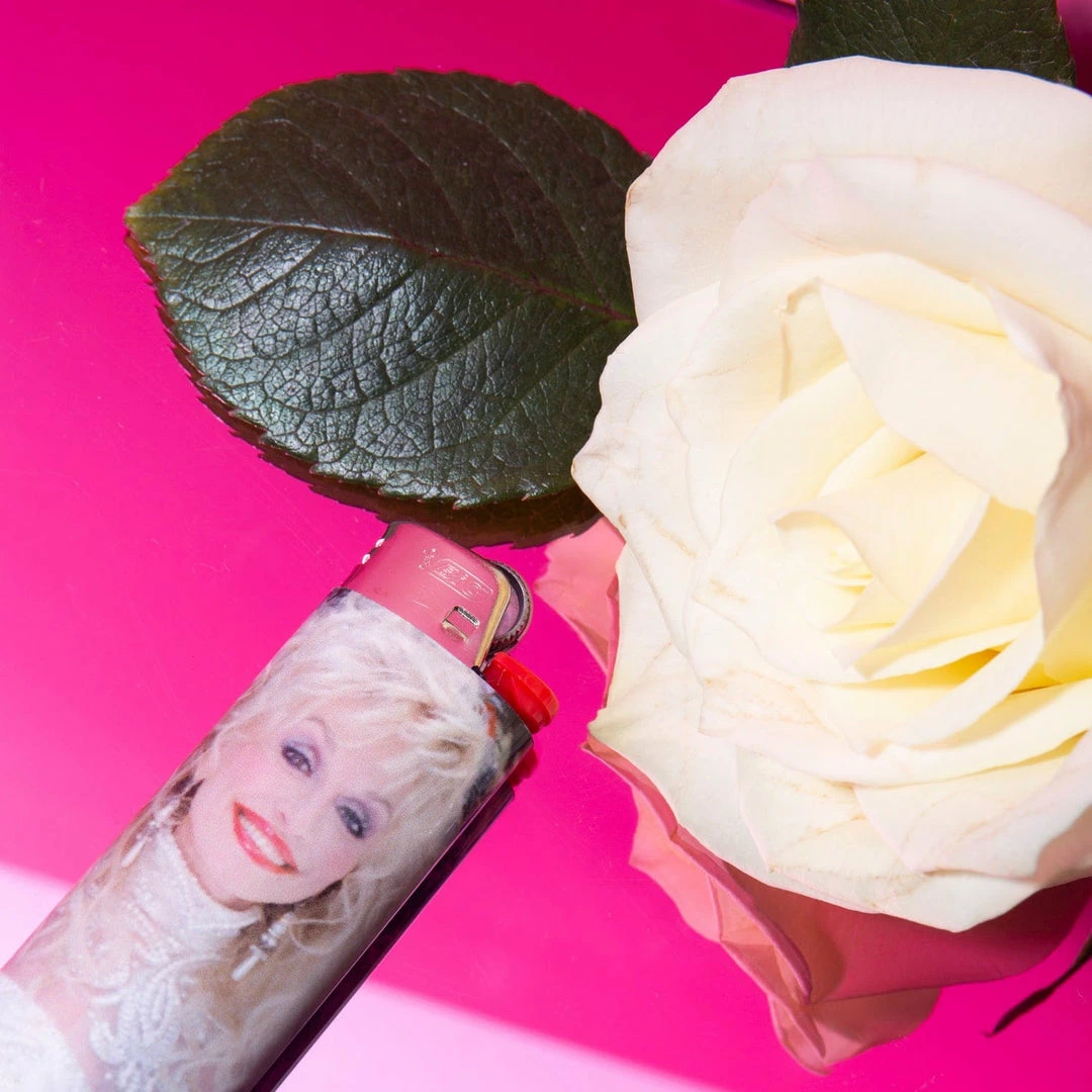 All hail the queen, the goddess, the beautiful Ms. Dolly Parton. This Dolly lighter is a Friends exclusive and is one of our best selling smoke accessories. Featuring Miss Dolly Parton in a dazzling, winter queen all white outfit.