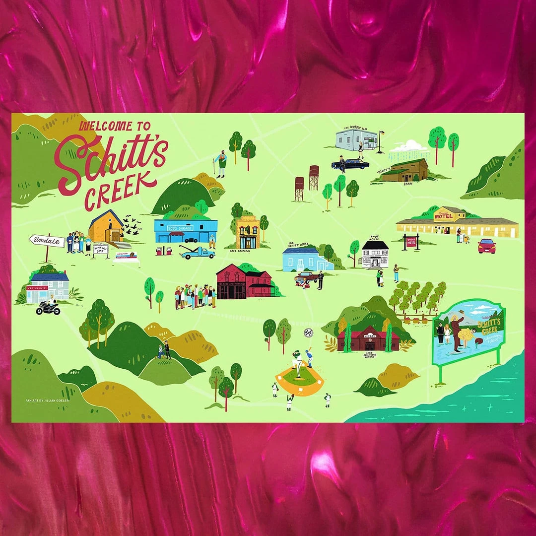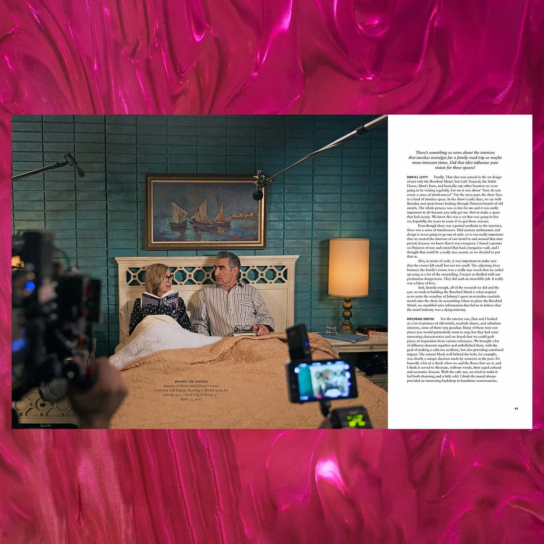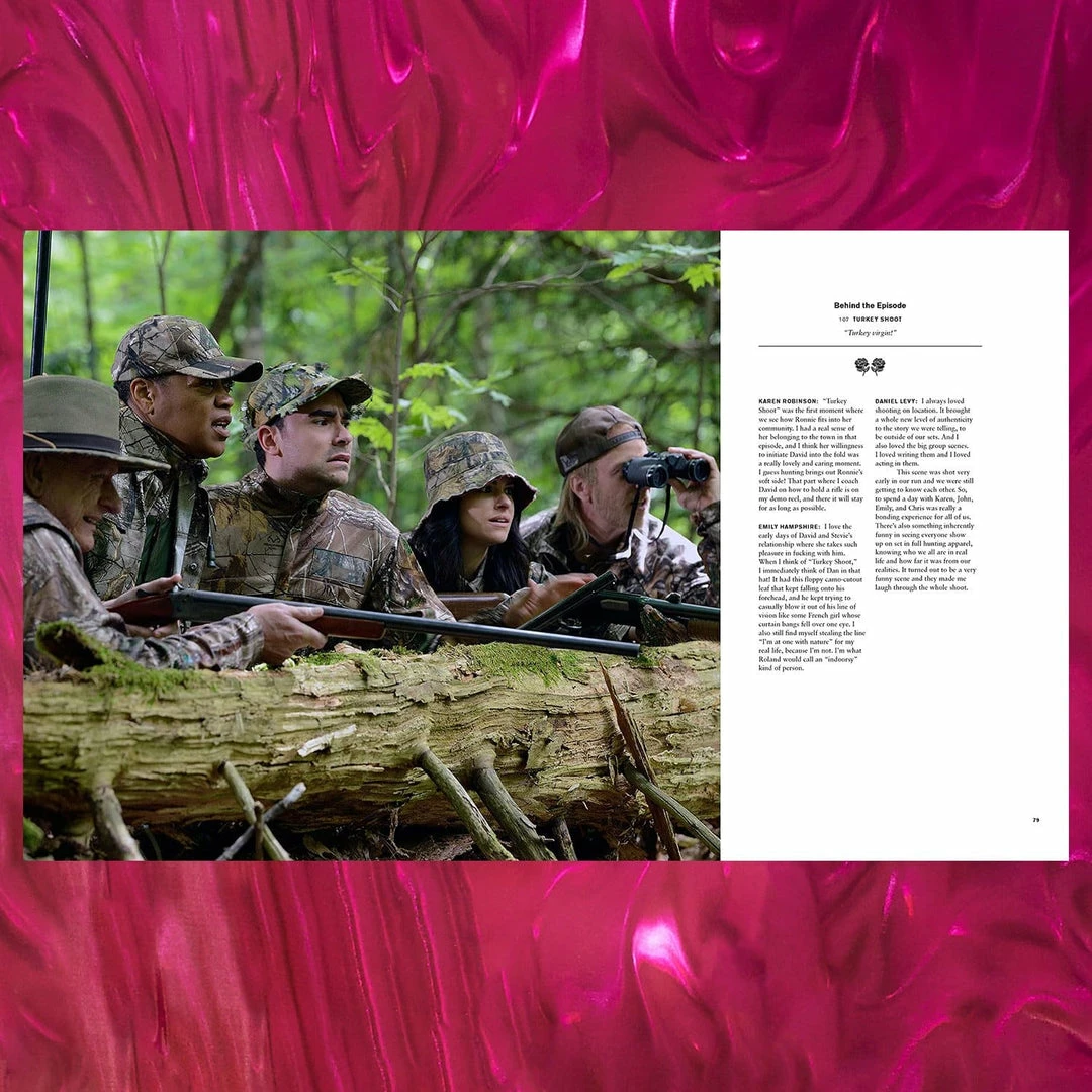 Included are character profiles from the cast of Johnny, Moira, David, and Alexis, and all of the characters that populate the town, major moments from Moira’s endorsement of Herb Ertlinger Winery, to Patrick and David’s first kiss, toΒ CabaretΒ and the Rose Family Christmas episode. Also included are special features, such as the complete, illustrated catalogs of David’s knits and Moira’s wigs, Moira’s vocabulary, Alexis’s adventures, and behind-the-scenes moments from Dan and Eugene Levy and the cast ofΒ Schitt’s Creek.