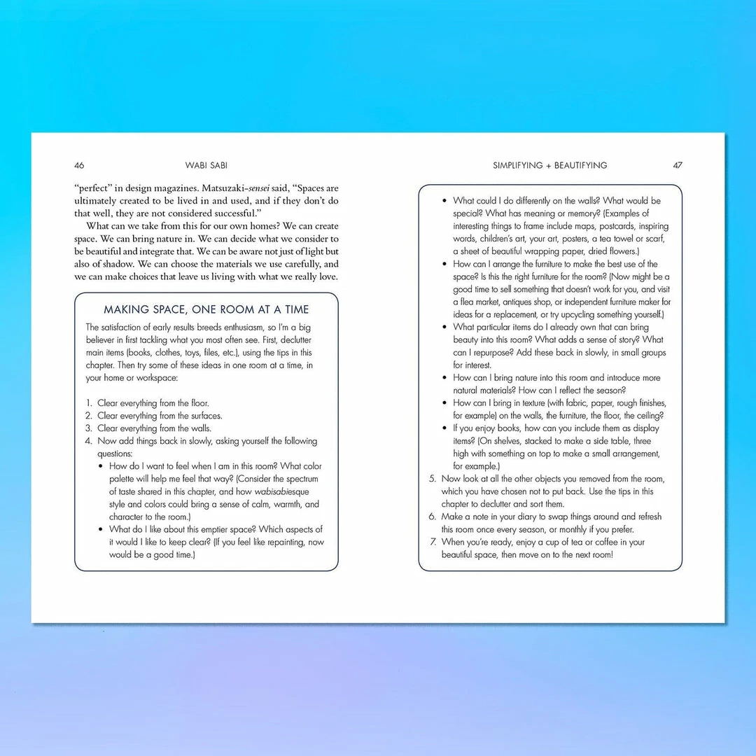 From honoring the rhythm of the seasons to creating a welcoming home, from reframing failure to aging with grace, Wabi Sabi teaches you find more joy and inspiration throughout your perfectly imperfect life.