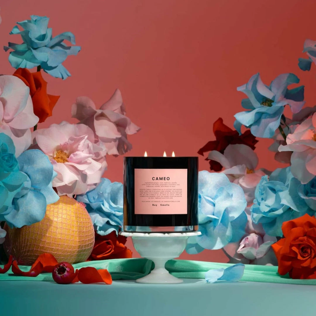 CAMEO scented candle evokes the strength and softness required to be kind in a not-always-kind world. As the light flickers on this Boy Smells candle, the spice of crystallized ginger, warmth of vanilla, and grounding power of rose inspire us to dream of a place where empathy is the default. Inspired by Andy Warhol’s polaroid of Dolly Parton, CAMEO is absurdly pretty, to a subversive degree. It is named after the Wedgewood porcelain pendants, depicting portraits in profile set against the typical color pink.