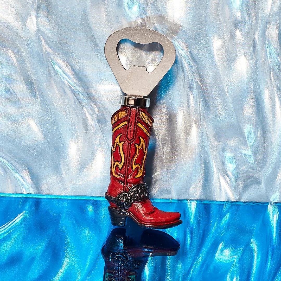 Insert a tiny bit of cowboy decor into your kitchen with this decorated cowboy boot bottle opener. Kick back and pop open a cold one with a western flare. Extremely sturdy and crafted from stainless steel so they are as tough as a real cowboy. Comes in 4 styles. Please note your preference at checkout or let us surprise you!
