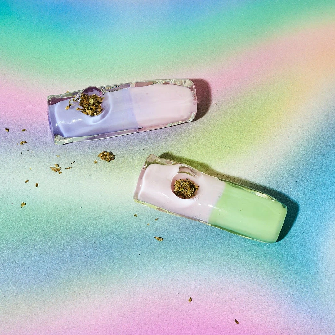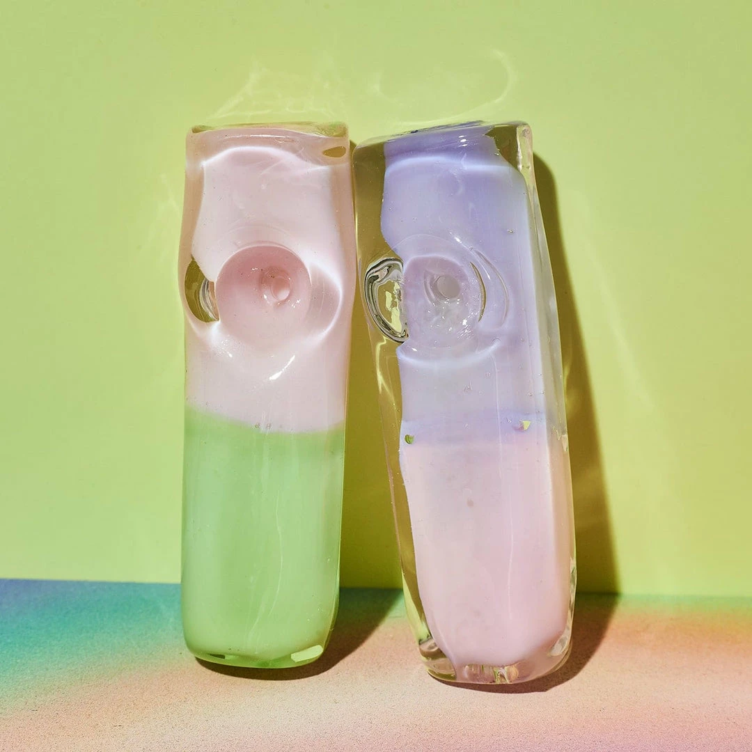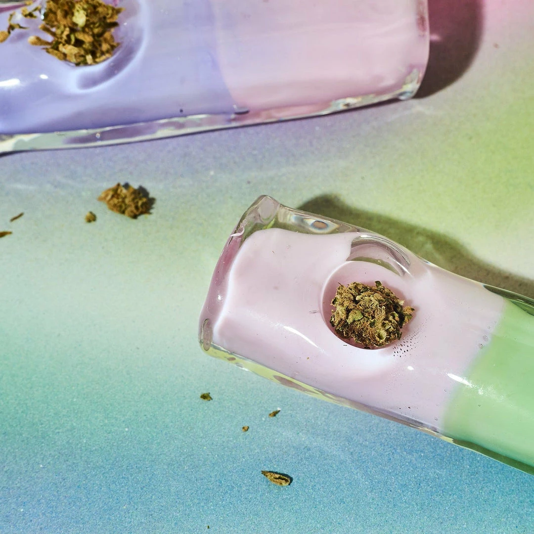 Create that aesthetic smoke scene with this pastel brick glass spoon. This colorful piece had its glass blown and designed to produce a chic, ombre look. The unusual shape allows for it to sit securely flat – so it doesn’t roll over and make a mess of herbs or ash.ย Works and feels like a bulky chillum.