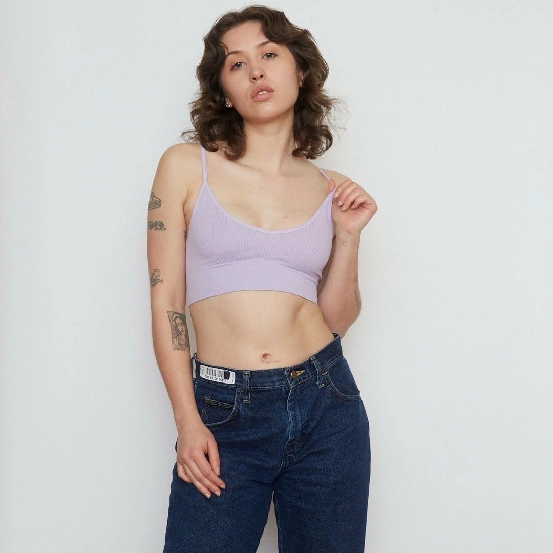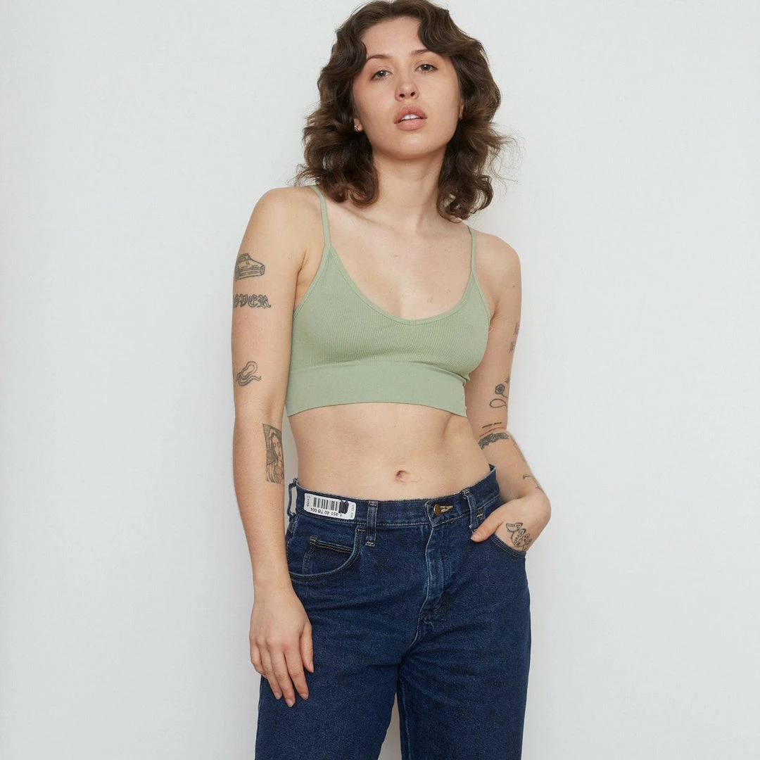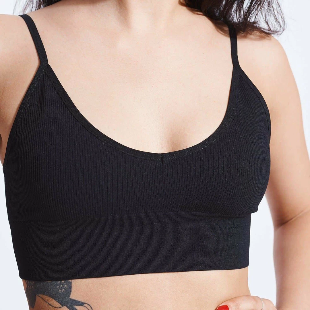 Found: the perfect seamless ribbed bralette. This spaghetti strap, v-neck style has just the right amount of coverage and support.