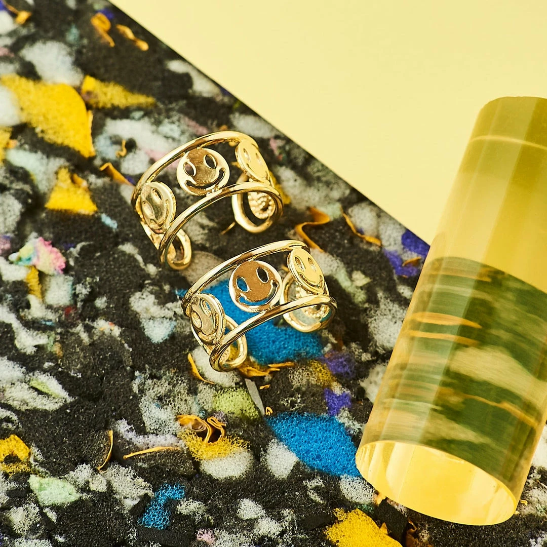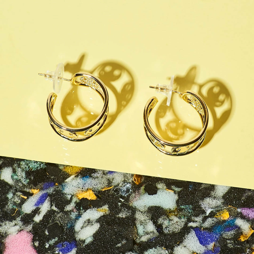 Smile like you mean it in these gold hoop earrings with wrap around smiley faces. Replace you standard hoops with some happy faces. The face outline is created by a cutout sitting within bordered edges. The smiley face gold plated hoop earrings will keep its shine and gleam for longer compared to traditional costume jewelry. Features stud backs.