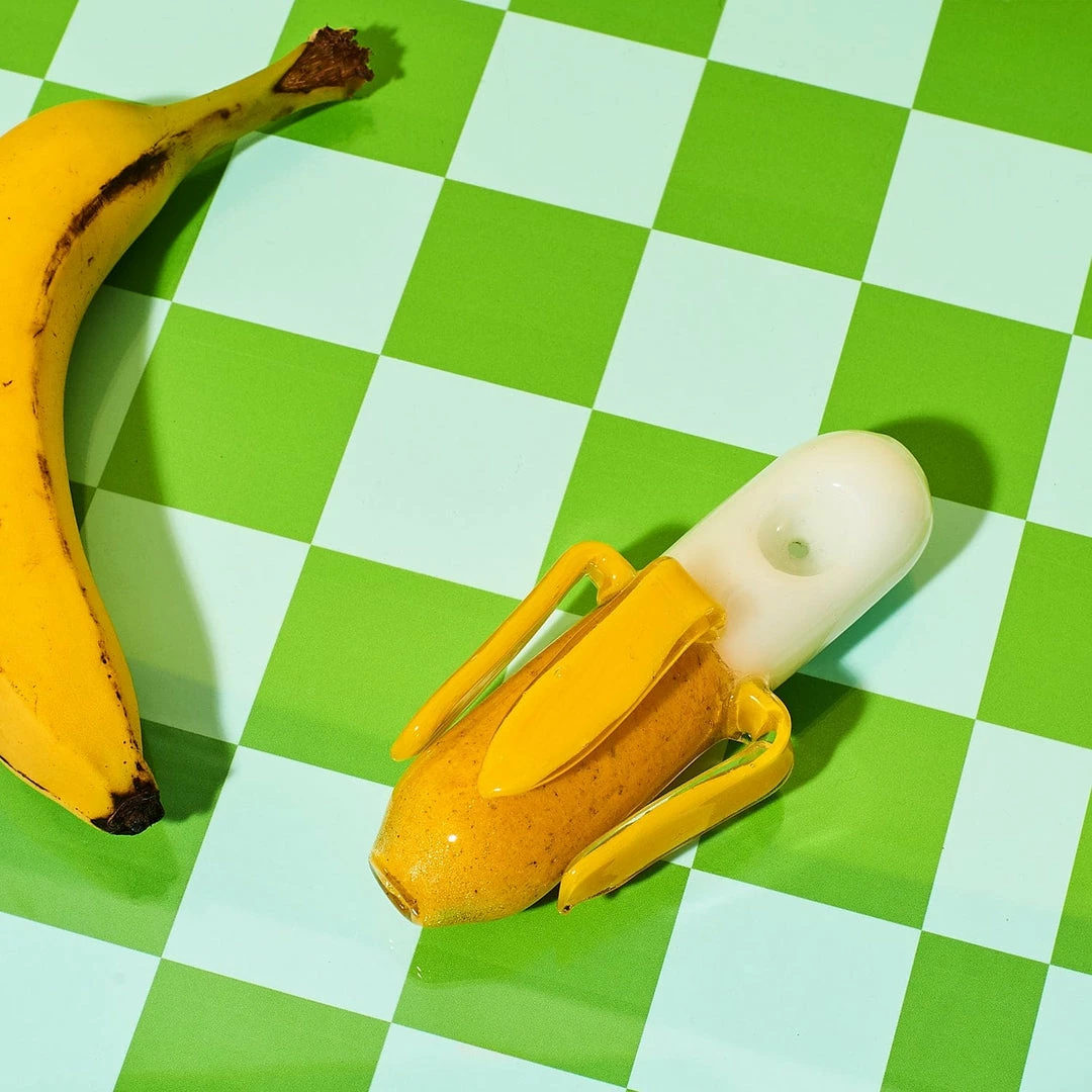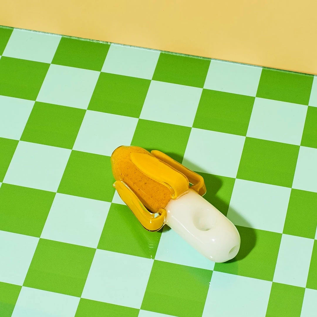 Make your next smoke session a fruitful one with this the Banana Glass Spoon. Peeled back and ready to go, pack in your herb of choice and light it up!ย Carb is at tip top of the exposed banana, so itโs a great for right and left handed stoners alike. All around, this food novelty glass piece is an appealing and unique gift! For legal herbs only ofc ๐