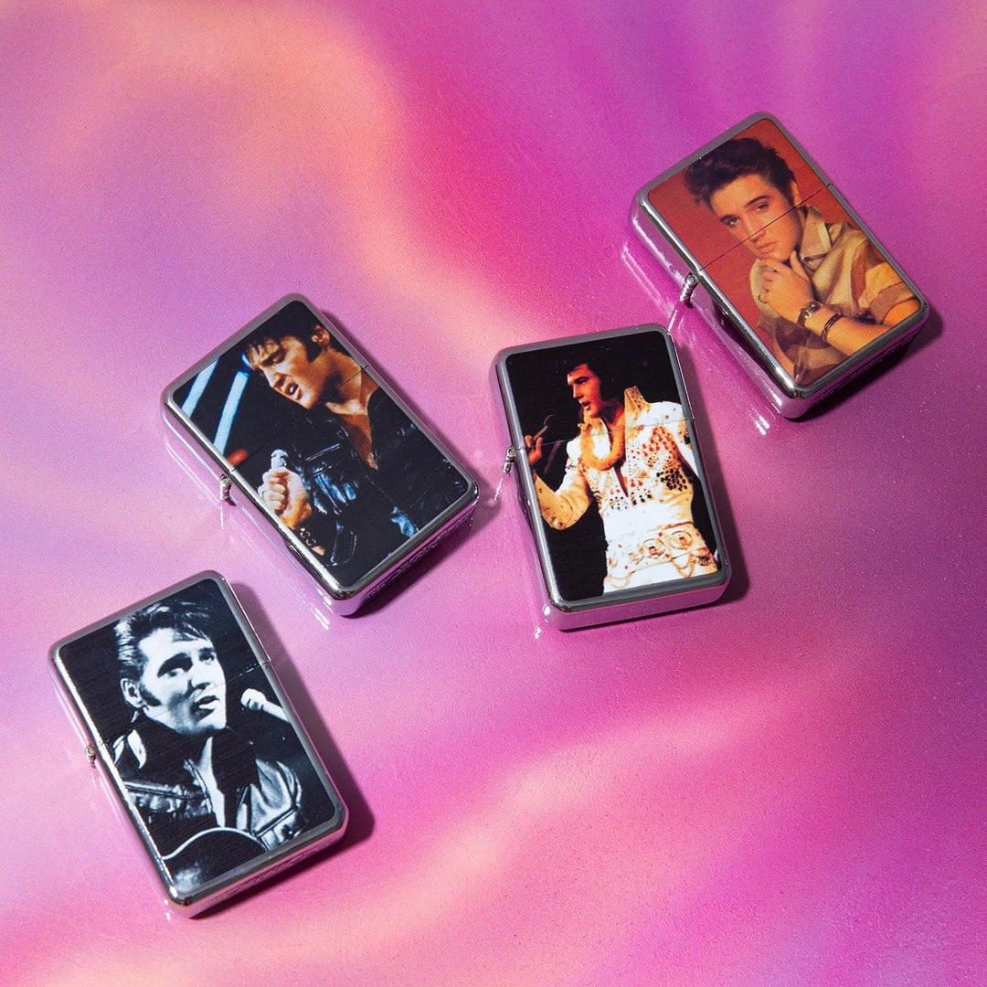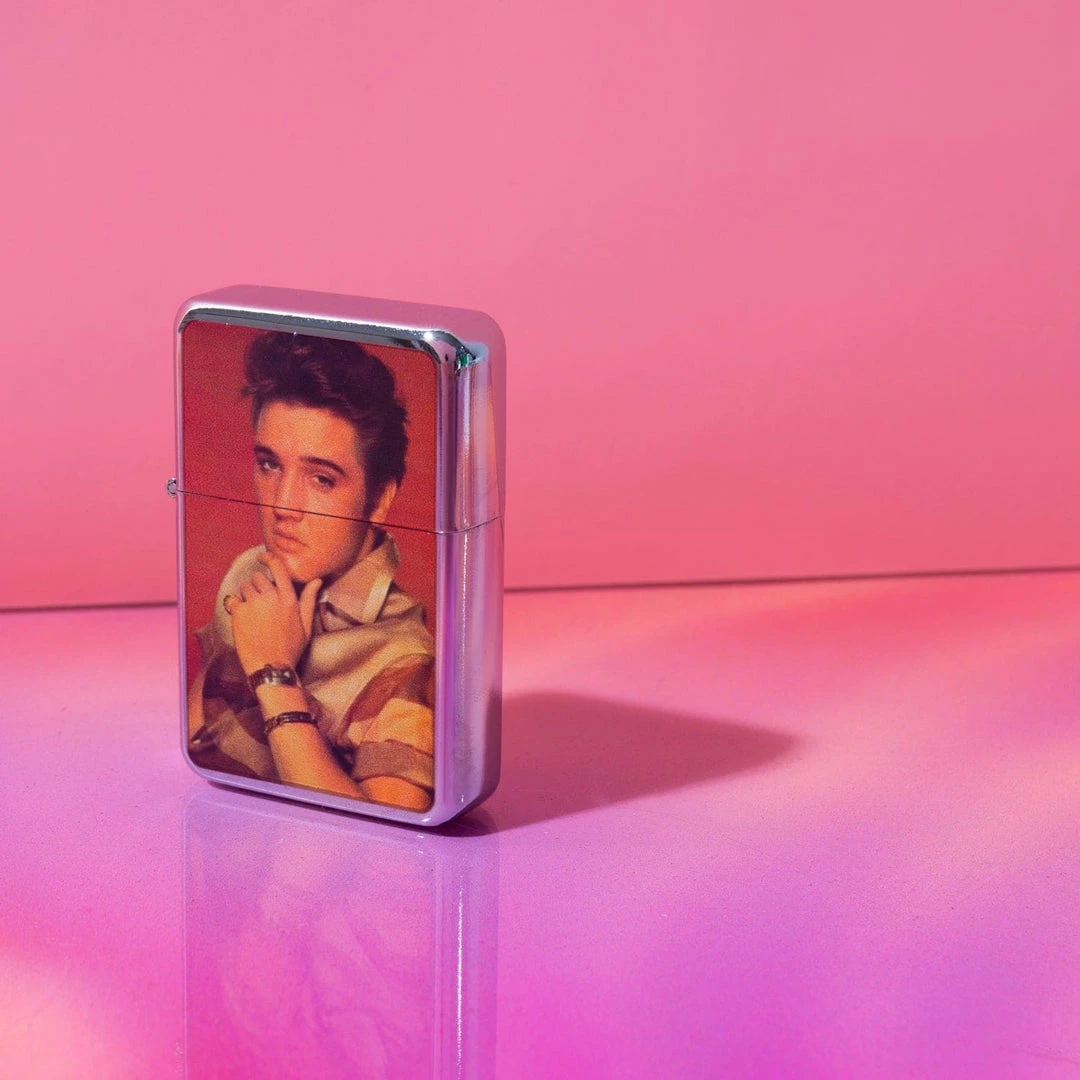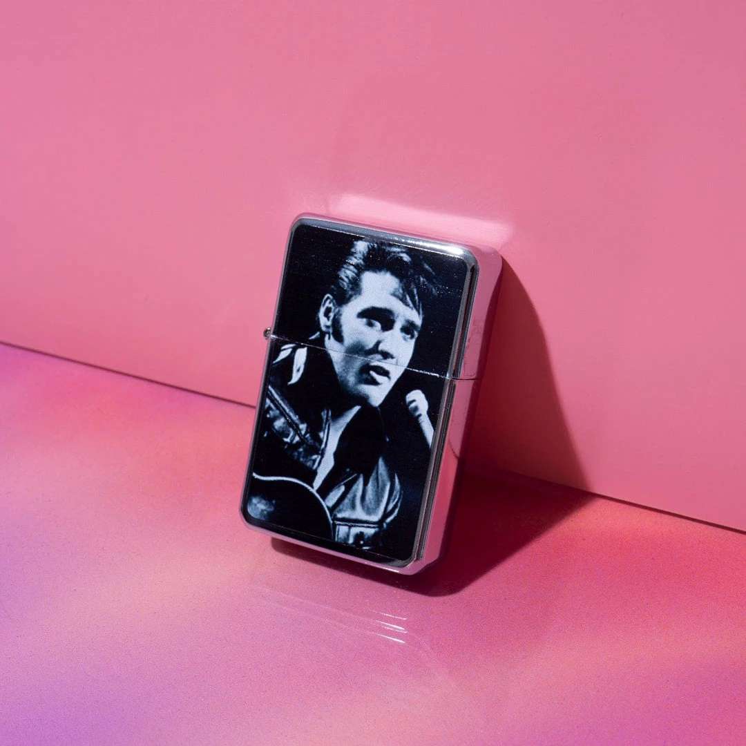For when you got that burning love, flip open your Elvis Presley reusable lighter. Coming in 4 different picture styles that range Elvis’s early to later Vegas career moments. Which one are you gonna pick? The metal refillable lighter can be stored its metal storage tin to keep it in tip top shape.
