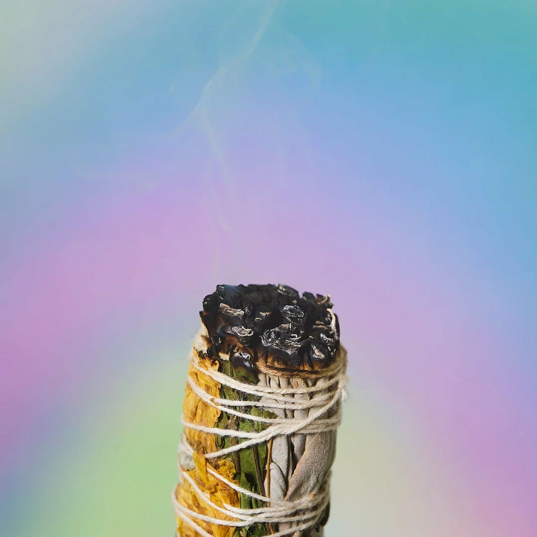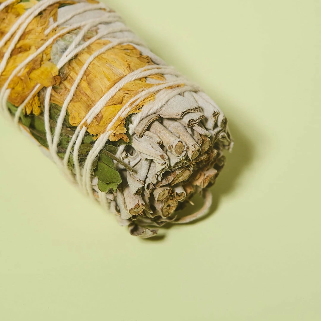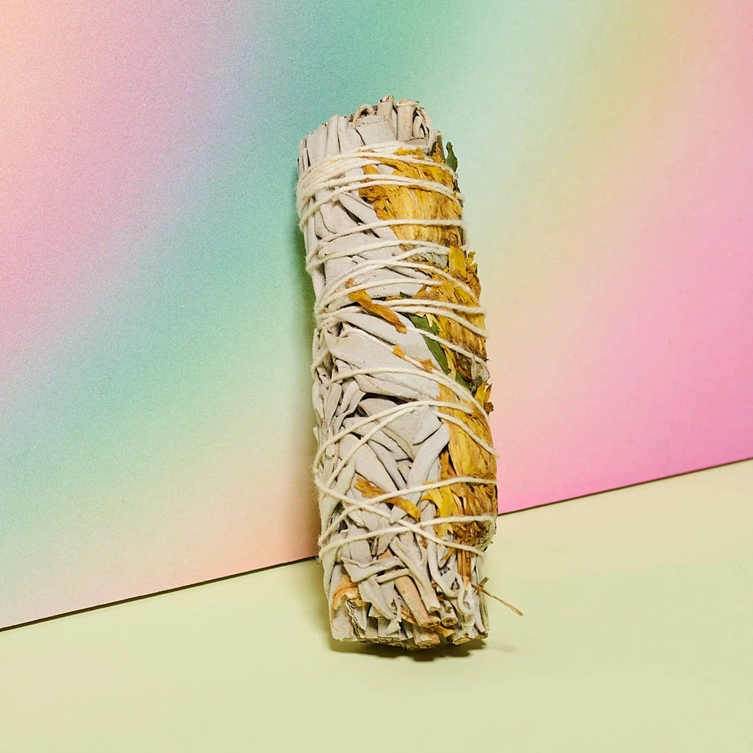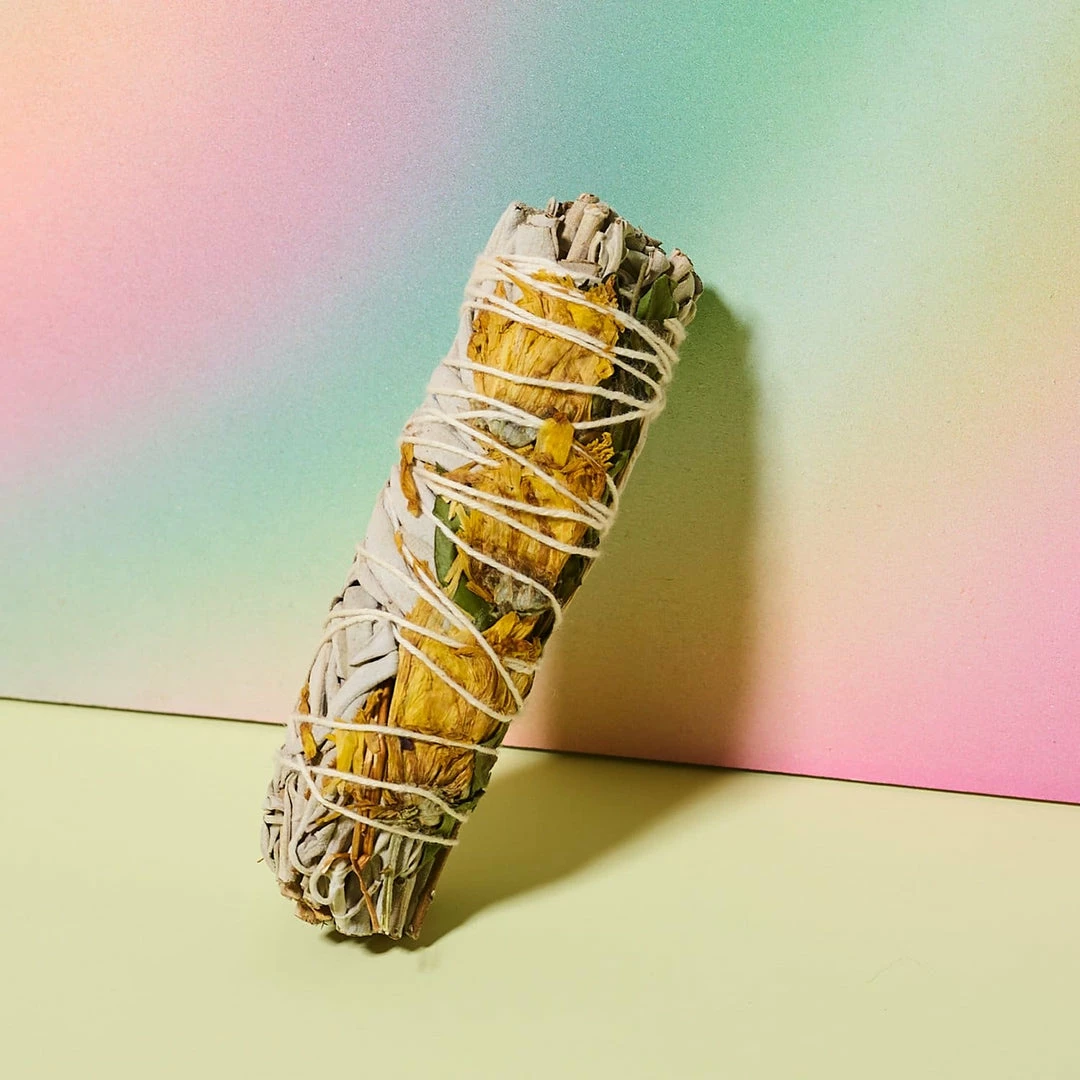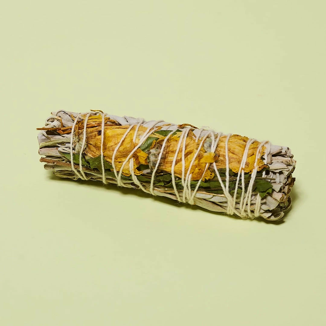 Cleanse away BS and bad energy (and really, all of 2020 so far) with this white sage and sunflower bundle. Measuring at 4″, it can be used several times for spell casting and good smells, too.