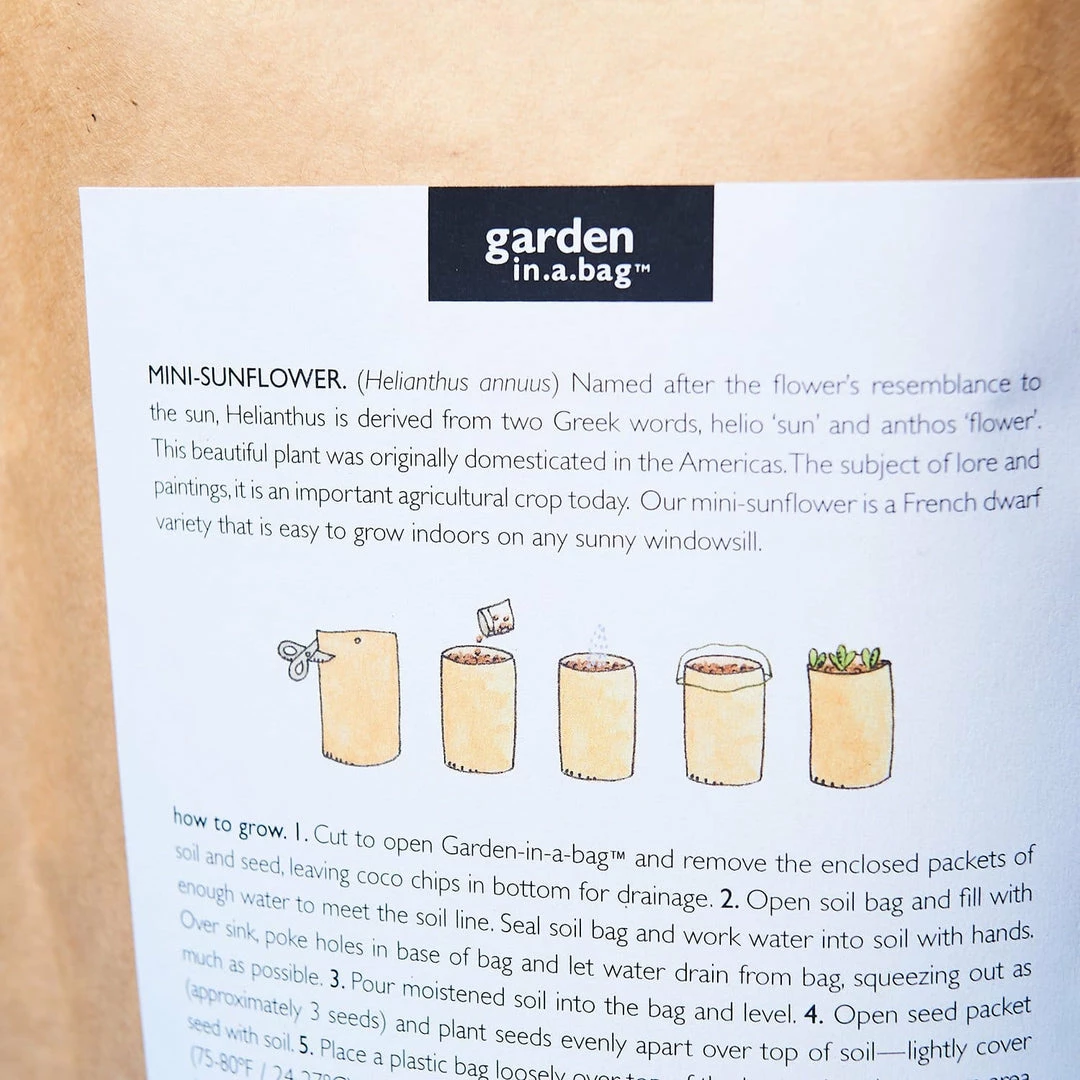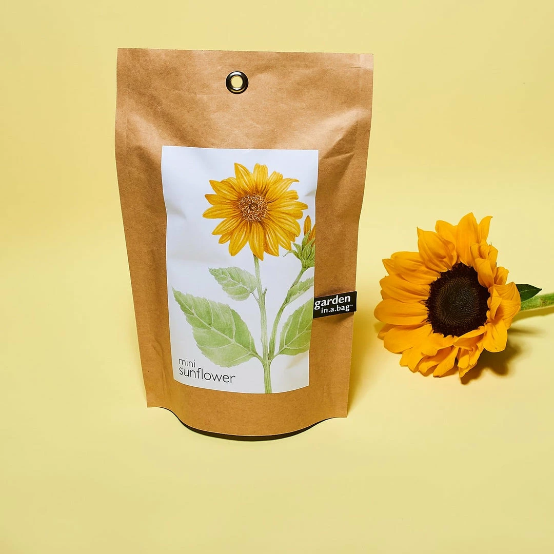 Brighten up your home with this easy mini sunflower grow kit. Named after the flower’s resemblance to the sun, Helianthus is derived from two Greek words, heliosun and anthos flower. This beautiful plant was originally domesticated in the Americas. The subject of lore and paintings, it is an important agricultural crop today. Our mini-sunflower is a French dwarf variety that is easy to grow indoors on any sunny windowsill.ย