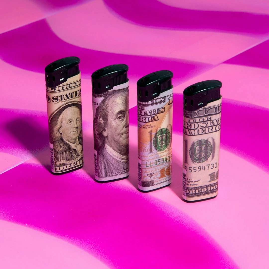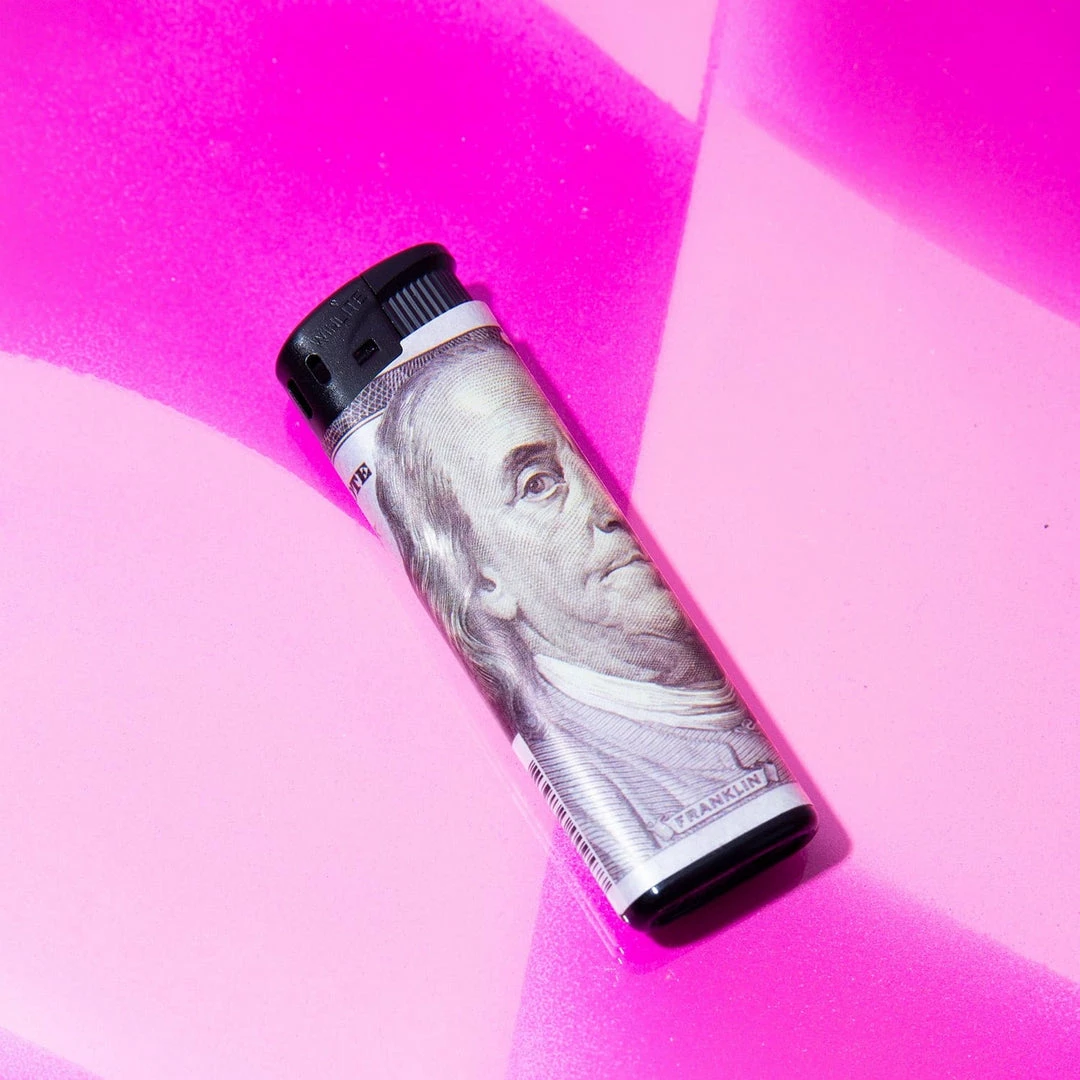 Get the new money feel with the $100 Bill novelty lighter. Light up your fave choice of alternative smoke from the Friends NYC Smoke Shop. Also the perf lighter to use during abundance manifestation rituals to bring yourself good fortune. Disposable lighter is wrapped in print of $100 bill in traditional currency coloring.