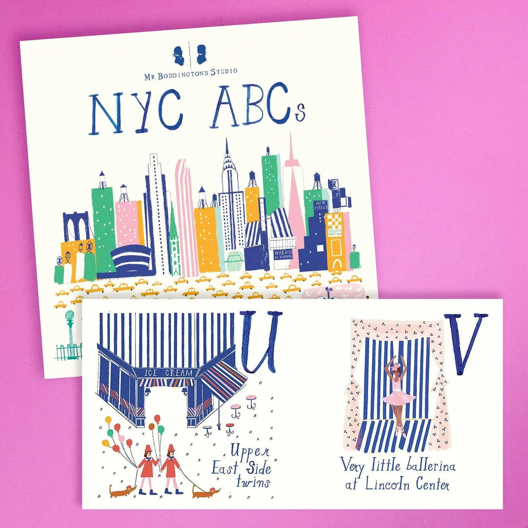 Description: Based on the beautiful designs of Mr. Boddingtonβs Studio, this board book is the perfect introduction to the ABCs of NYC.