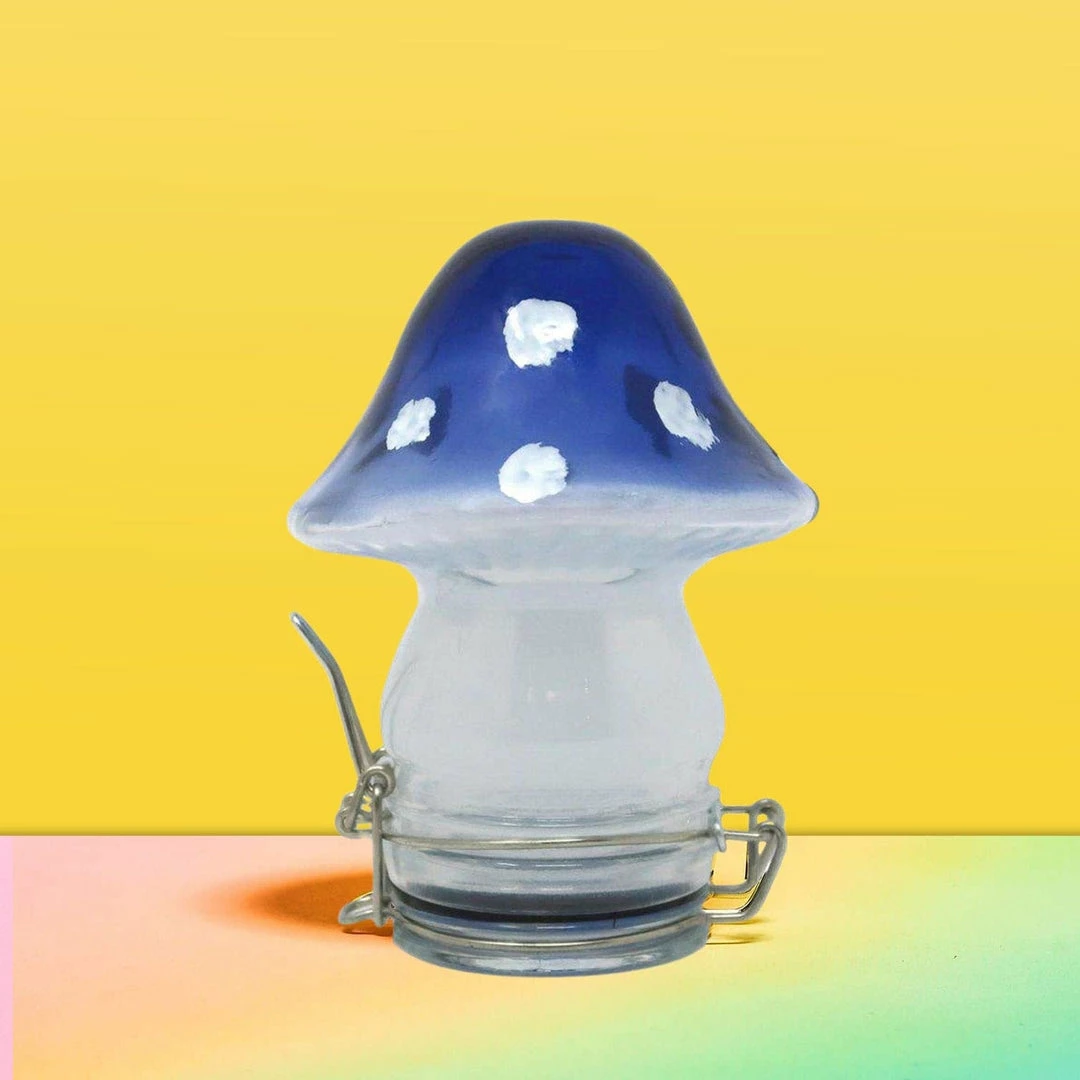 So you want to add a little fun to your green friendly home? Liven up rolling trays and countertops alike with this functional, mushroom shaped art glass jar. Served as a conversation piece or to store an herb (or both!). Air tight and opens from the bottom, to keep your herbs fresh and your home odorless.ย