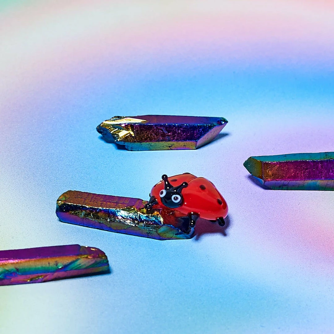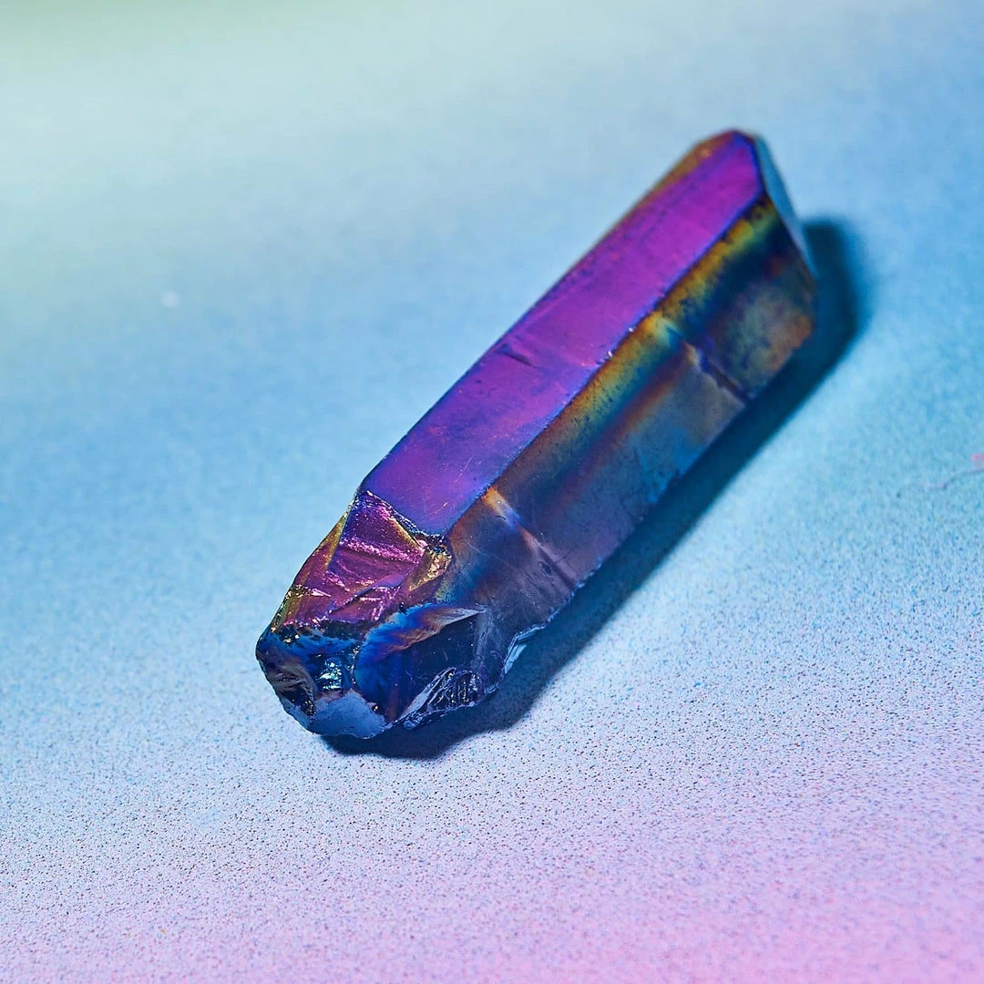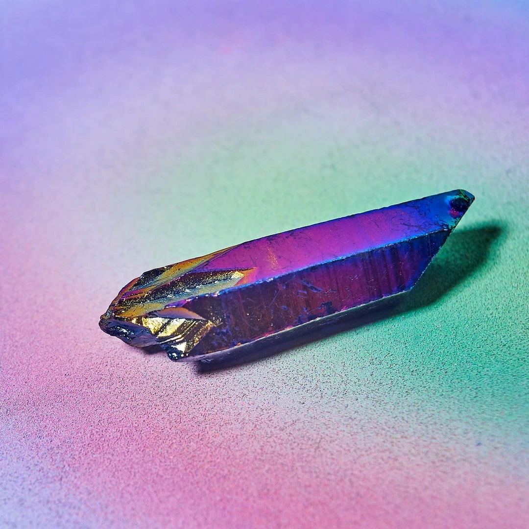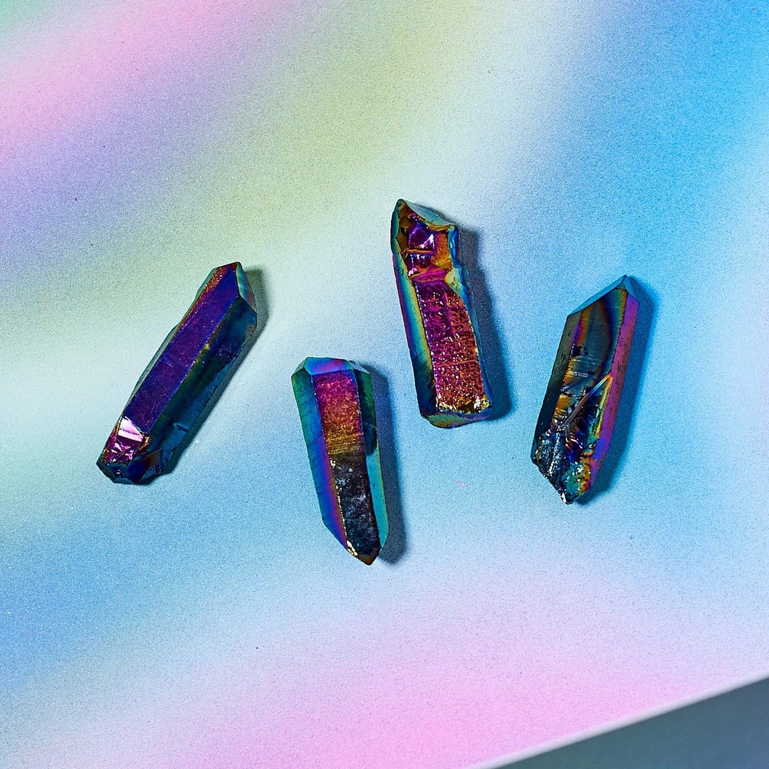 The rainbow points are treated with an iridescent rainbow plating, created a truly unique and colorful experience every which way you handle the crystal.ย