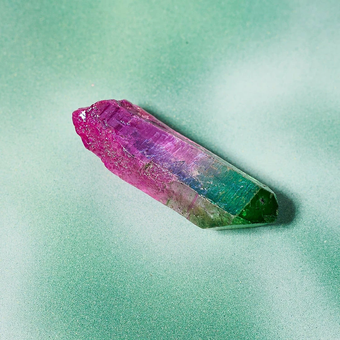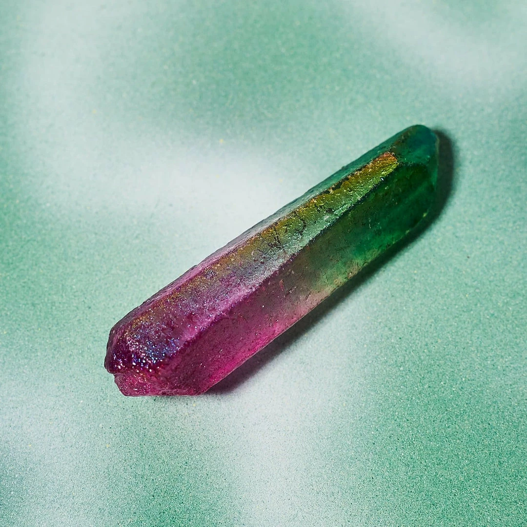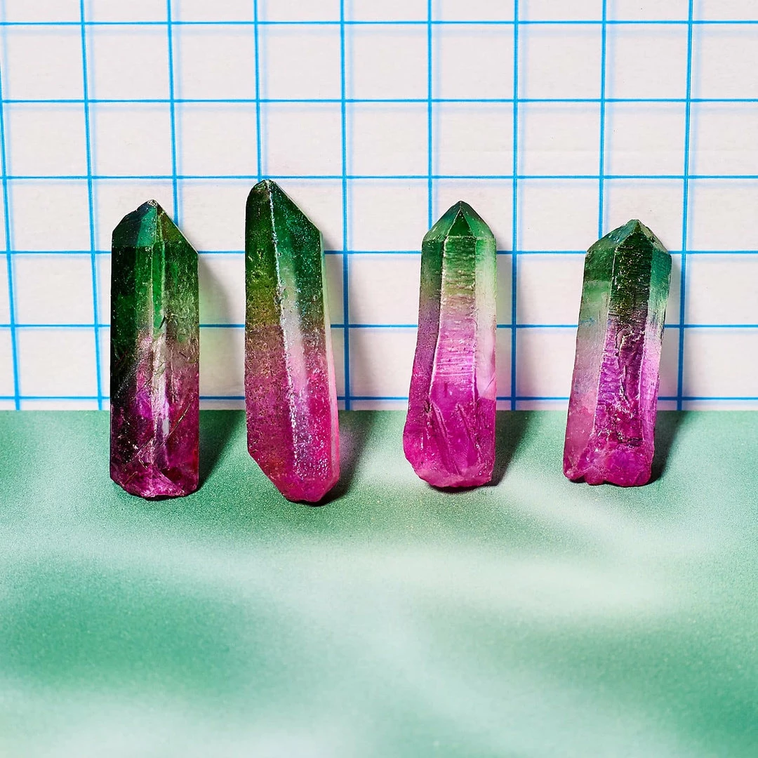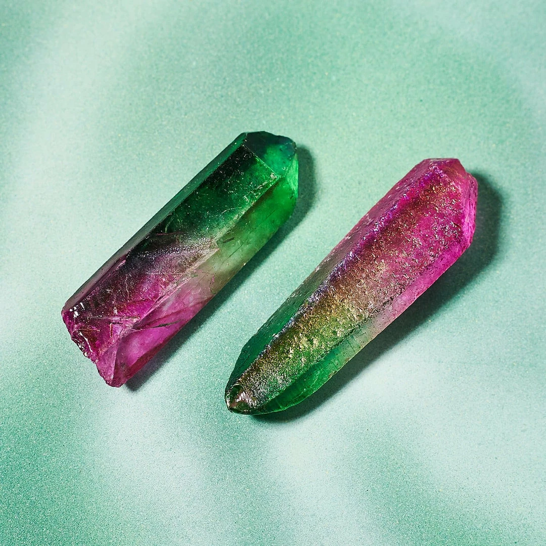 Experience a watermelon-esque color gradient with the pink and green crystal points. Treated with pink and green plating at linear defined points to create an ombre effect.