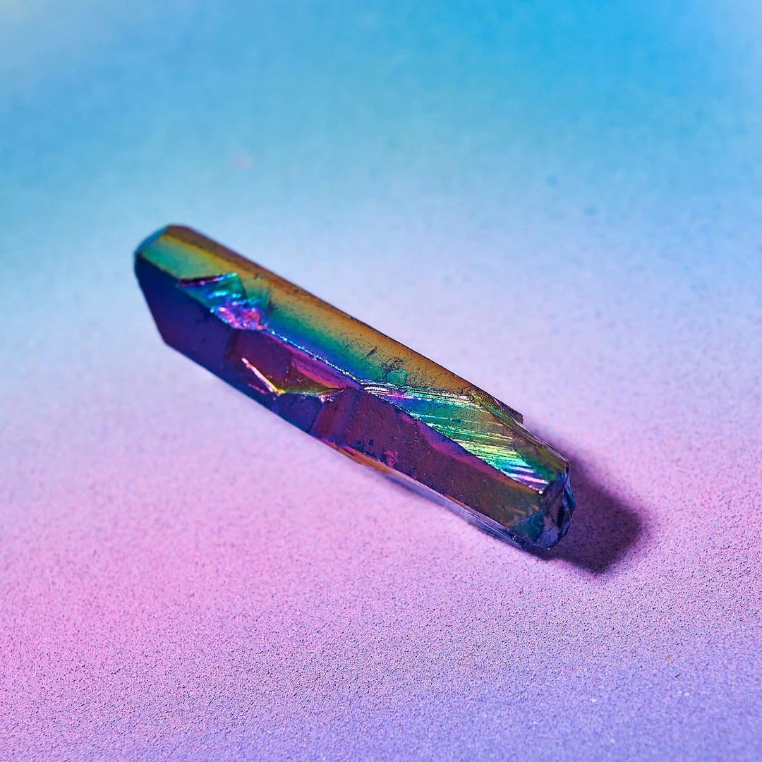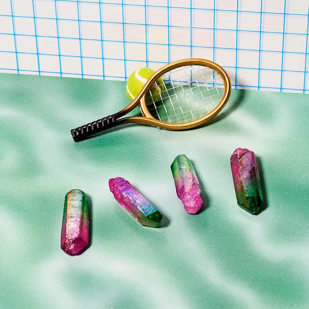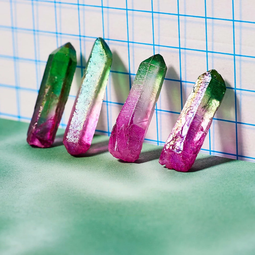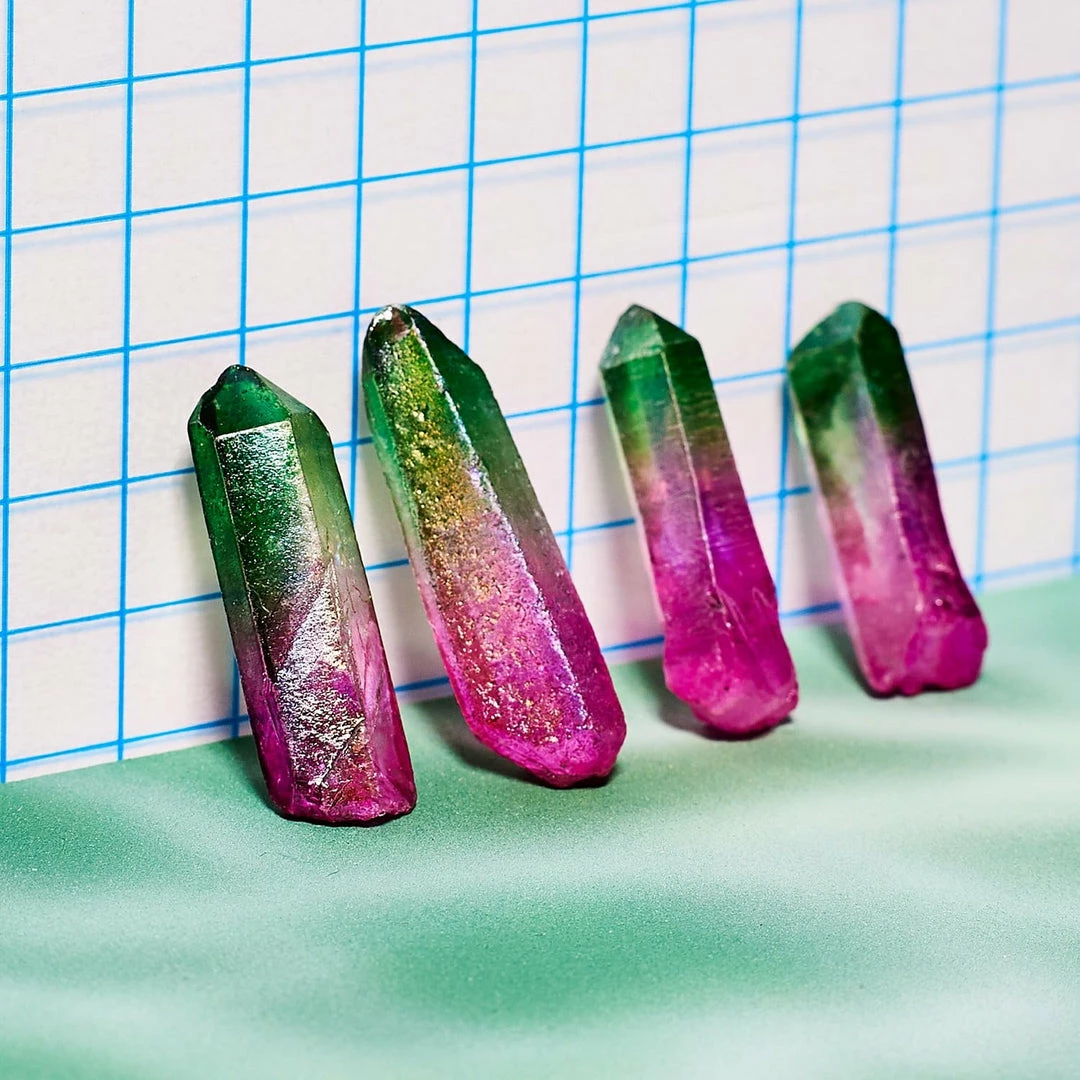 Experience a watermelon-esque color gradient with the pink and green crystal points. Treated with pink and green plating at linear defined points to create an ombre effect.