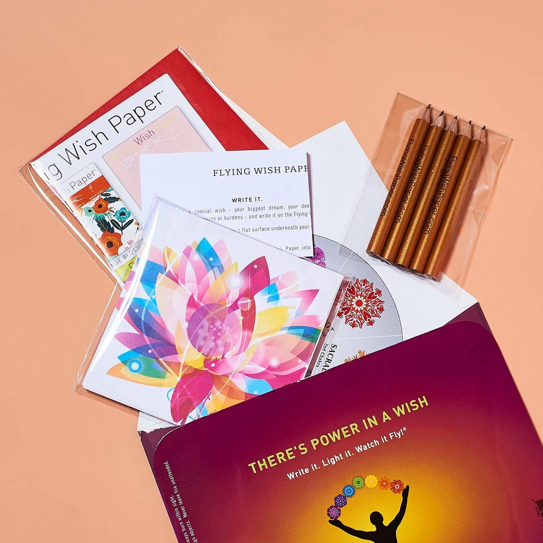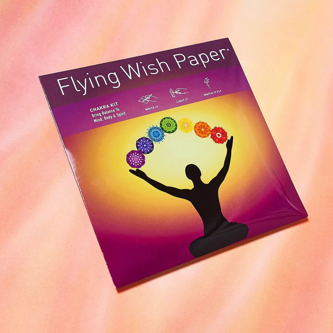 Manifest and share your wishes with the Chakra Flying Wish Paper Kit. Each kit comes with a guide explaining the 7 major Chakras to support your spiritual powers and vibrancy.