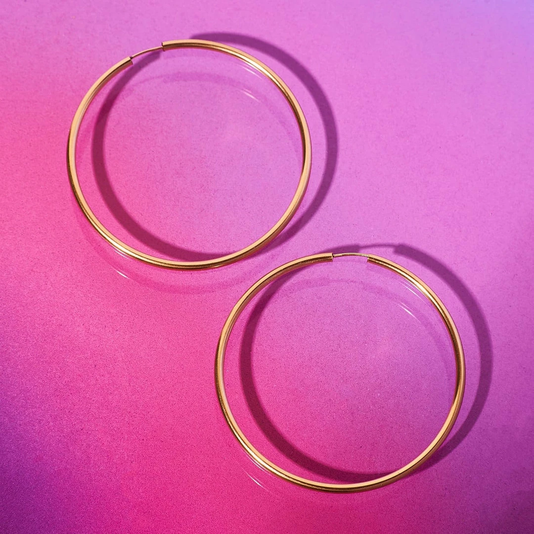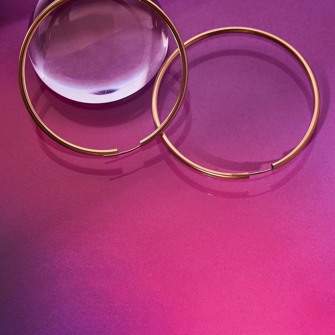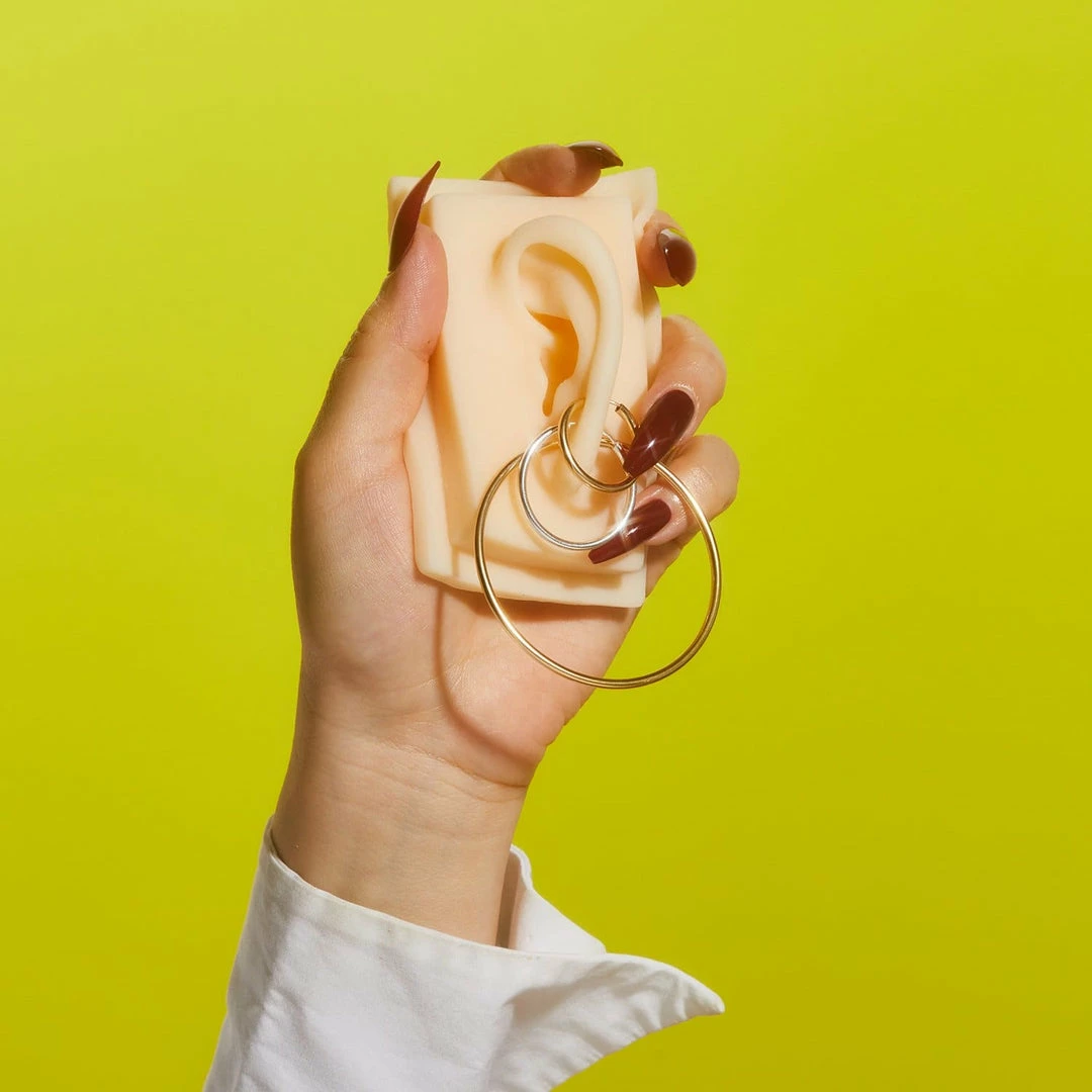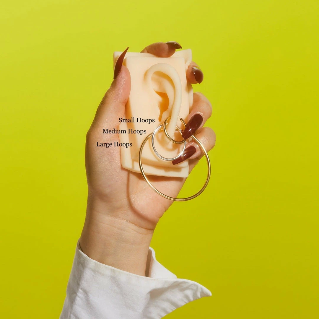 A true staple earrings basic! Worn through all seasons, with casual and going out looks, big hoop earrings are truly one of the most versatile accessories you can have in your jewelry collection. Standing alone, large silver hoop earrings or gold hoop earrings can either complement or be the bold statement of your fit – depends on you! Style with some of our small hoop earrings. If you have multiple piercings to create a layered, textured look.ย Available in gold fill or sterling silver.