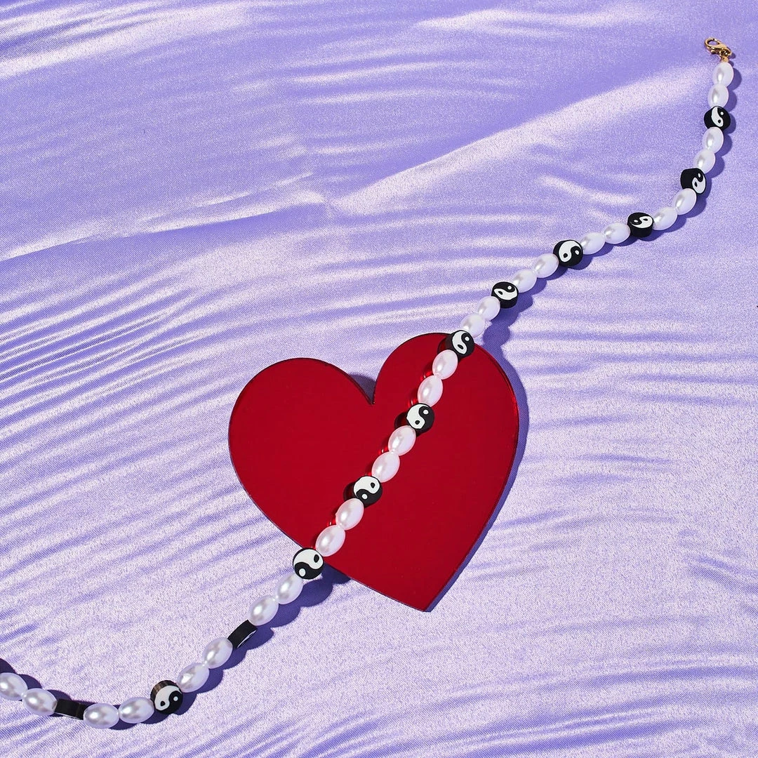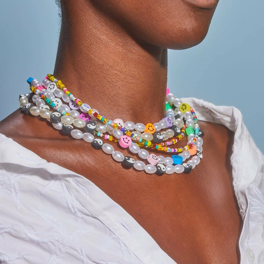Keep the your look harmonious with a yin yang beaded necklace. The craftcore vibe jewelry is on trend right now, giving major Y2K baby feels. Yin yang beads are spaced out the neutral faux pearls. Wear alone or layered with other kitsch beaded necklaces.