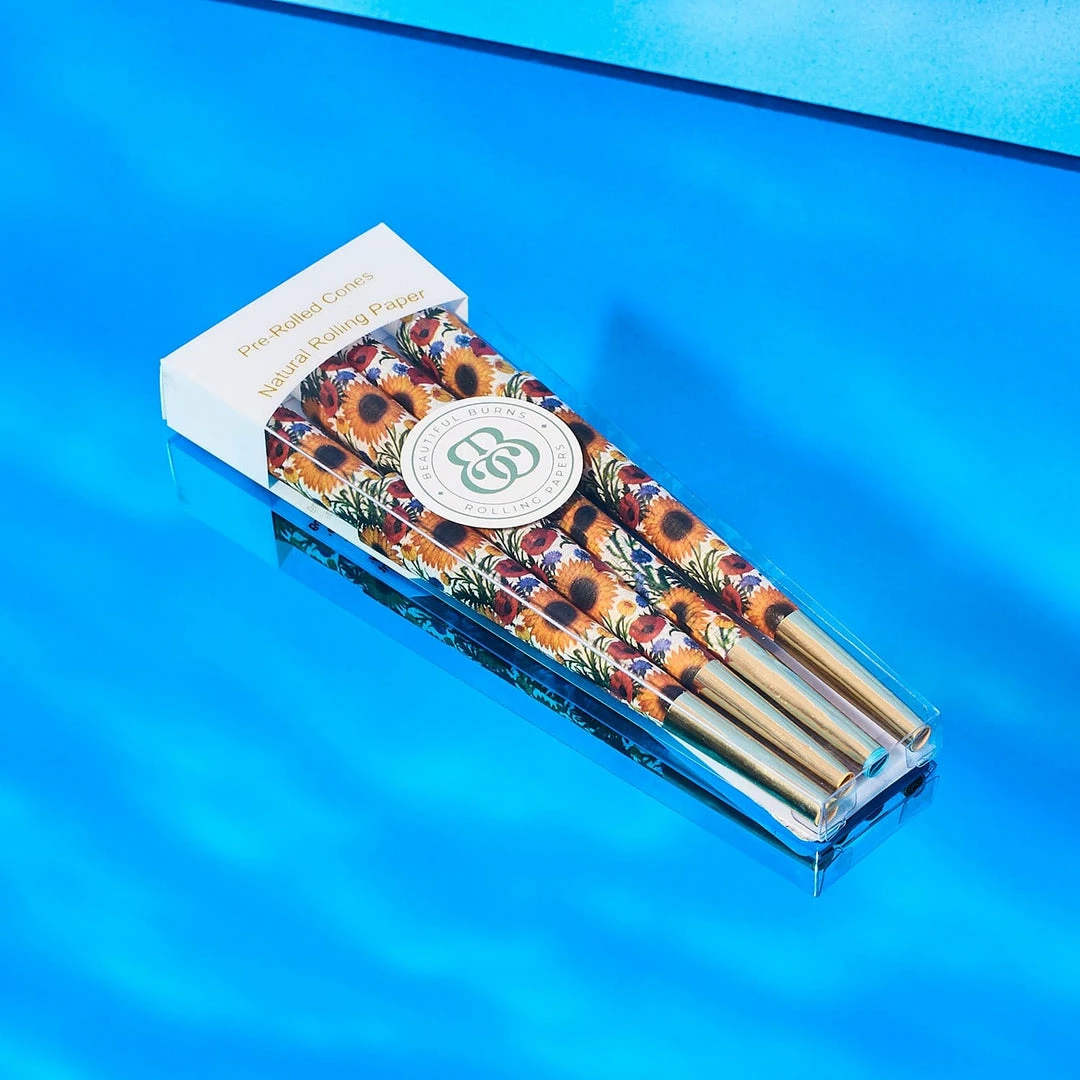 Add a lil sunshine to your day! Take in some green with these fun and floral sunflower printed rolling cones. Smoke it up smooth with the ultra thin, eco-friendly palm pulp based paper. Find even more printed cones in the Friends NYC Smoke Shop.