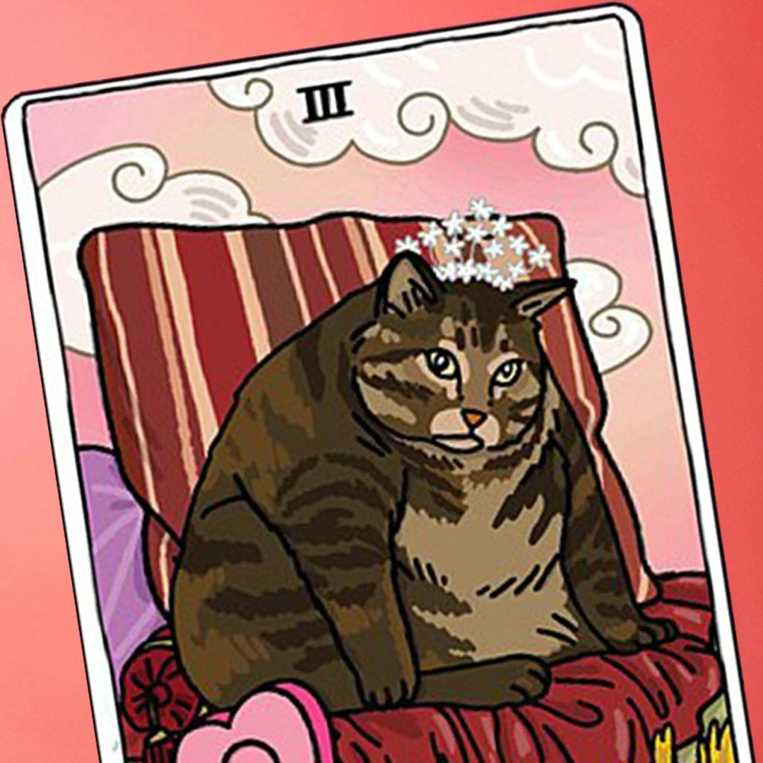 Tarot but in cat meme form!Β Because it is waterproof, you can use this sticker for water bottles, bikes, laptops, cars, phone cases and more! Die cut sticker is designed like The Empress tarot card, highlighting a truly chonky cat sitting on cushioned throne, wearing a starry crown on their head.