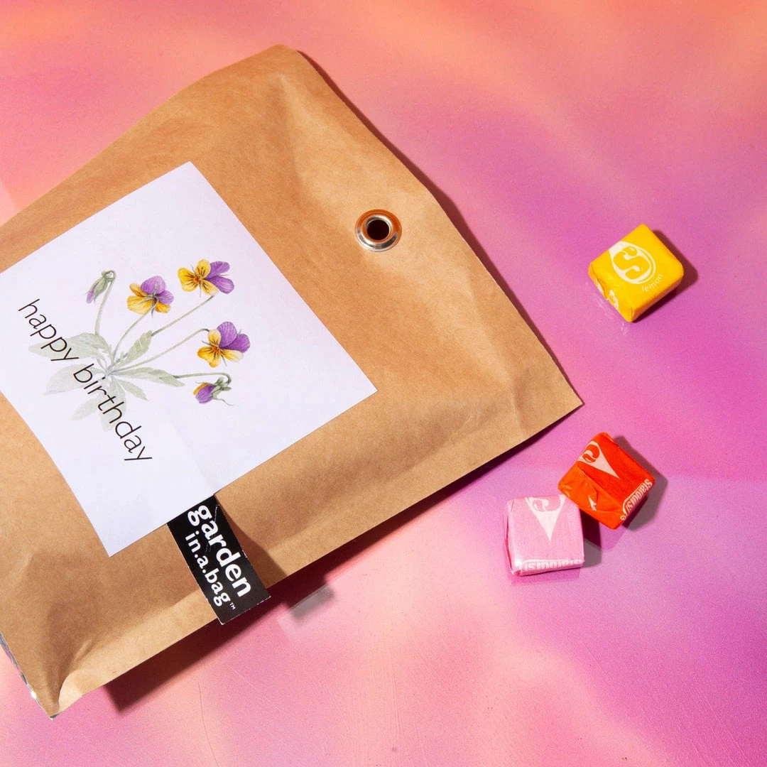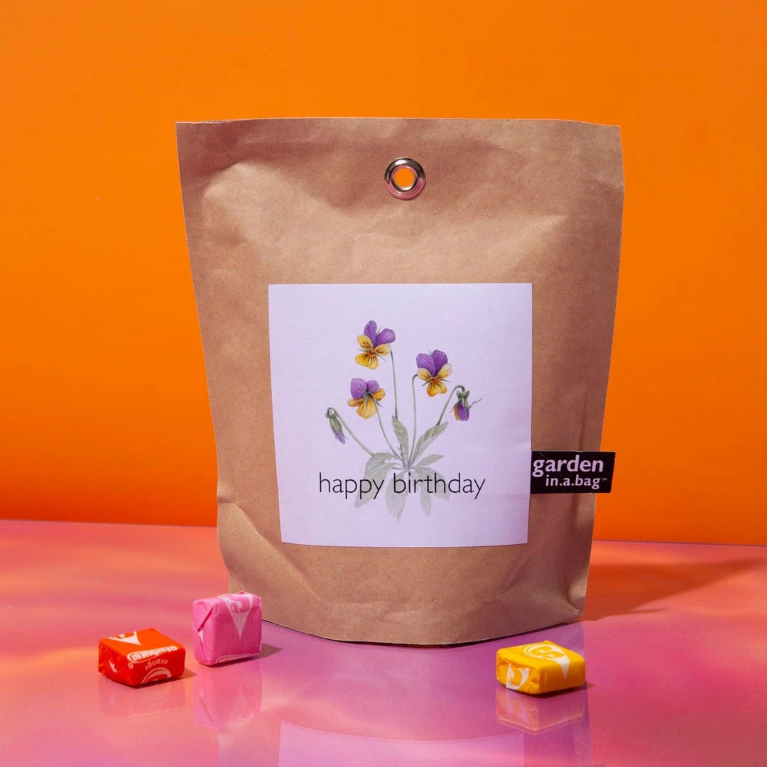 This Happy Birthday Garden In a Bag is the perfect way to celebrate a birthday with a plant lover! It comes with everything you need to grow Violas, also known as Pansies. These hearty plants are easy to grow and will add brightness to any space. Plus, they’re edible – so your plant lover can nibble on them whenever they please! Everything you need to start up is included!ย