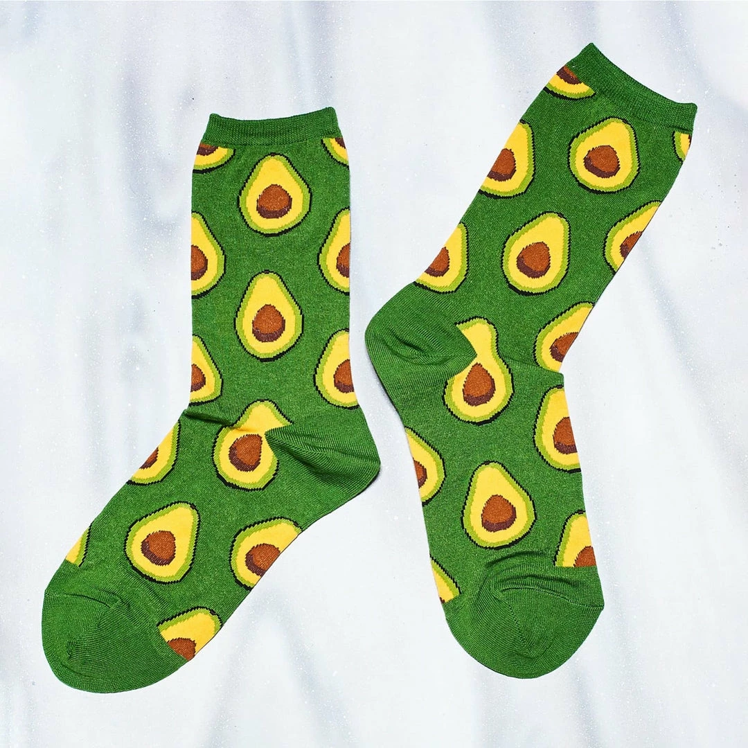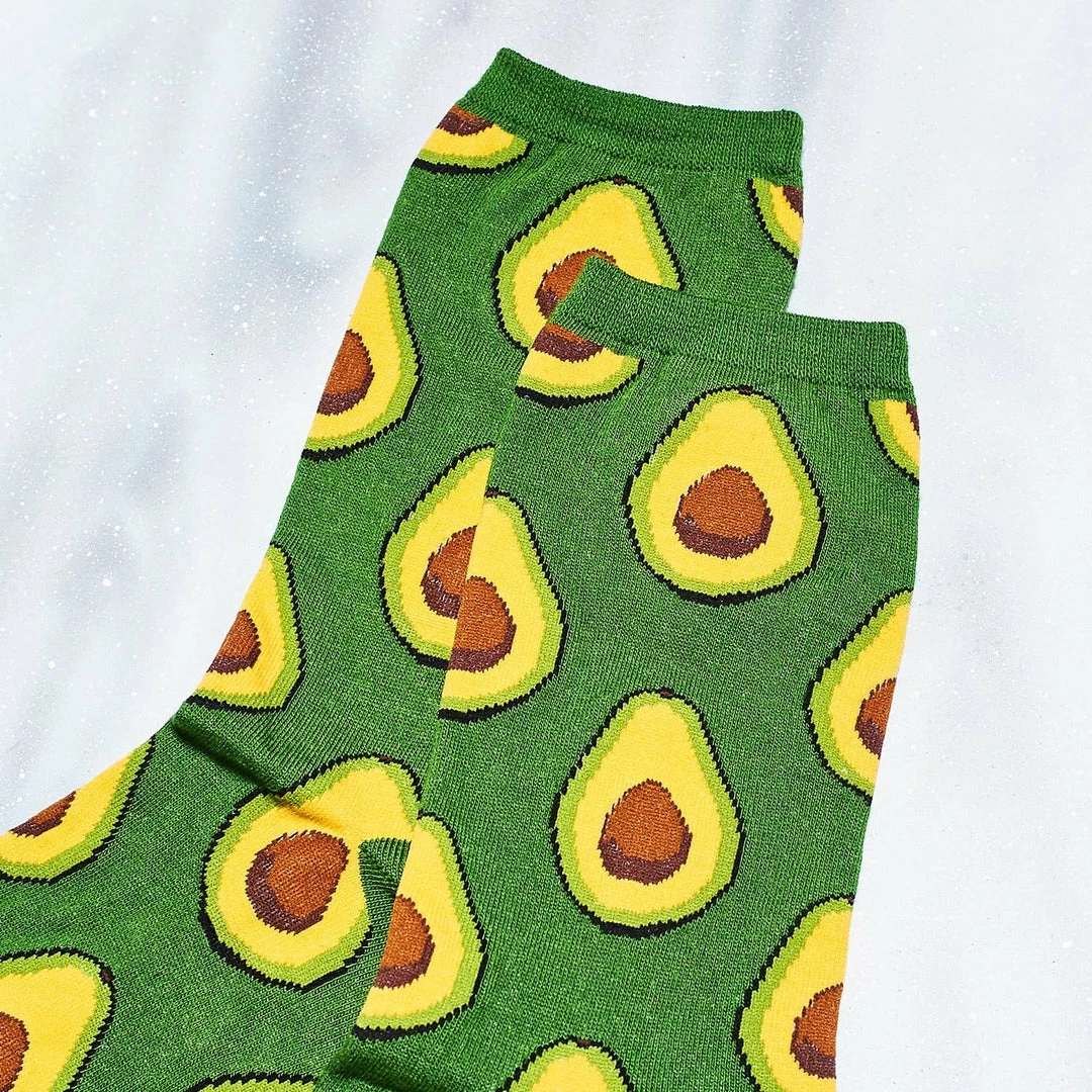 If it’s good enough to eat, it’s good enough to wear on your feet! Halved avocados lay on a green background. These food novelty socks are an ideal gift for any foodie.