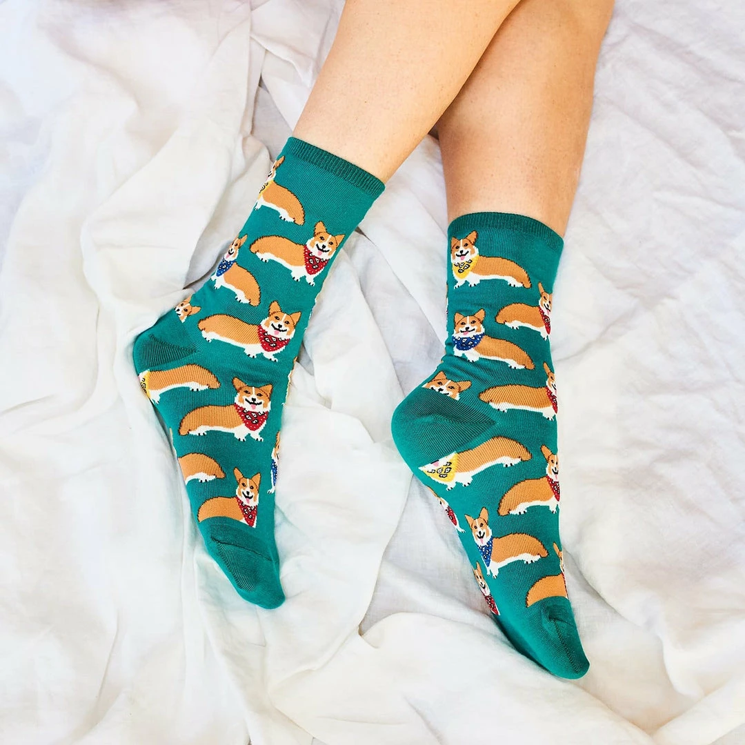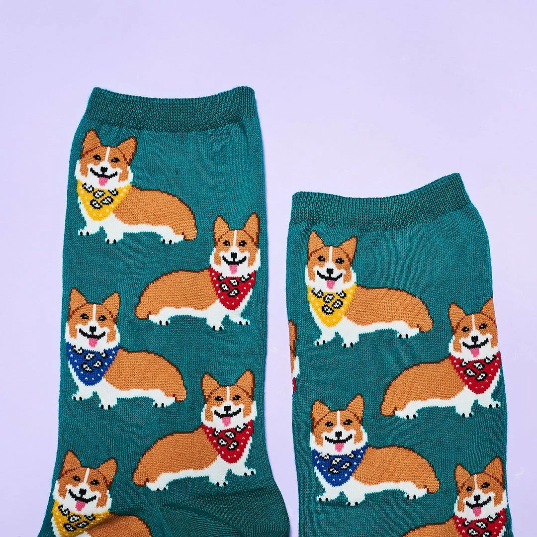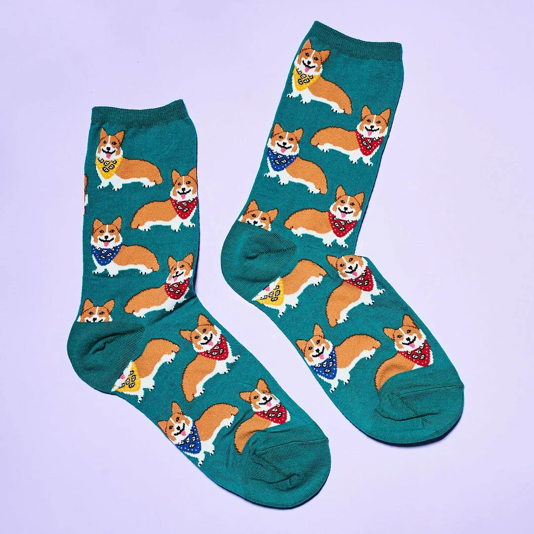 Honestly we didn’t know corgi’s could get any cuter! Emerald socks feature a plethora of corgi’s fashioned in 3 different colored neckerchiefs. These animal novelty socks are such a cute gift idea for dog lovers.