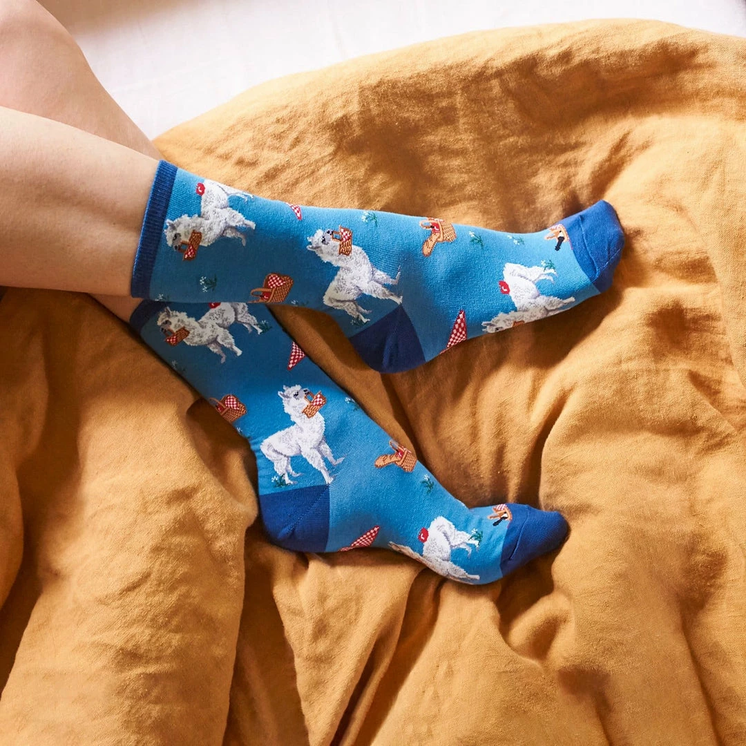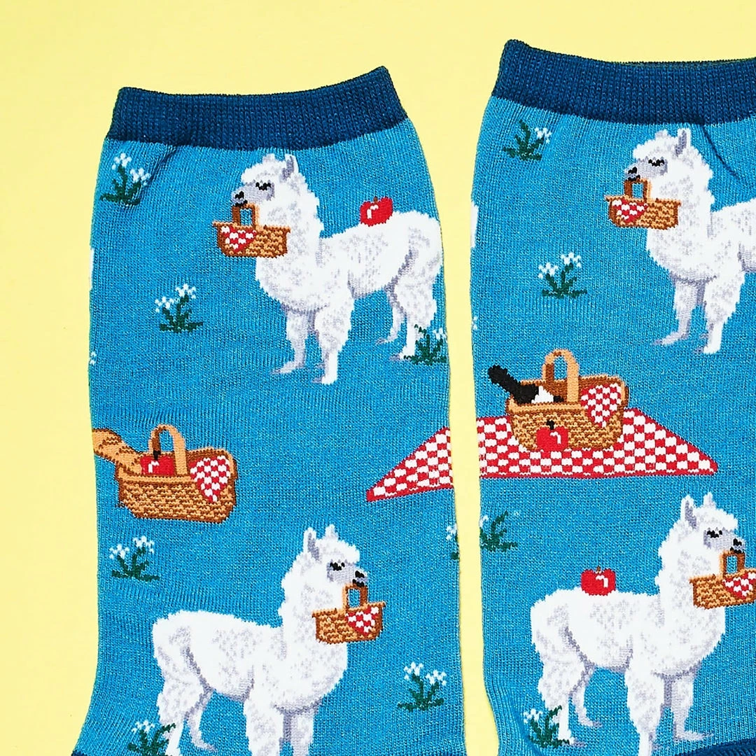 Punch up your lookย with these punny socks. Illustrating the play on words, the novelty socks depict an alpaca that prepped a picnic basket lunch. How cute!