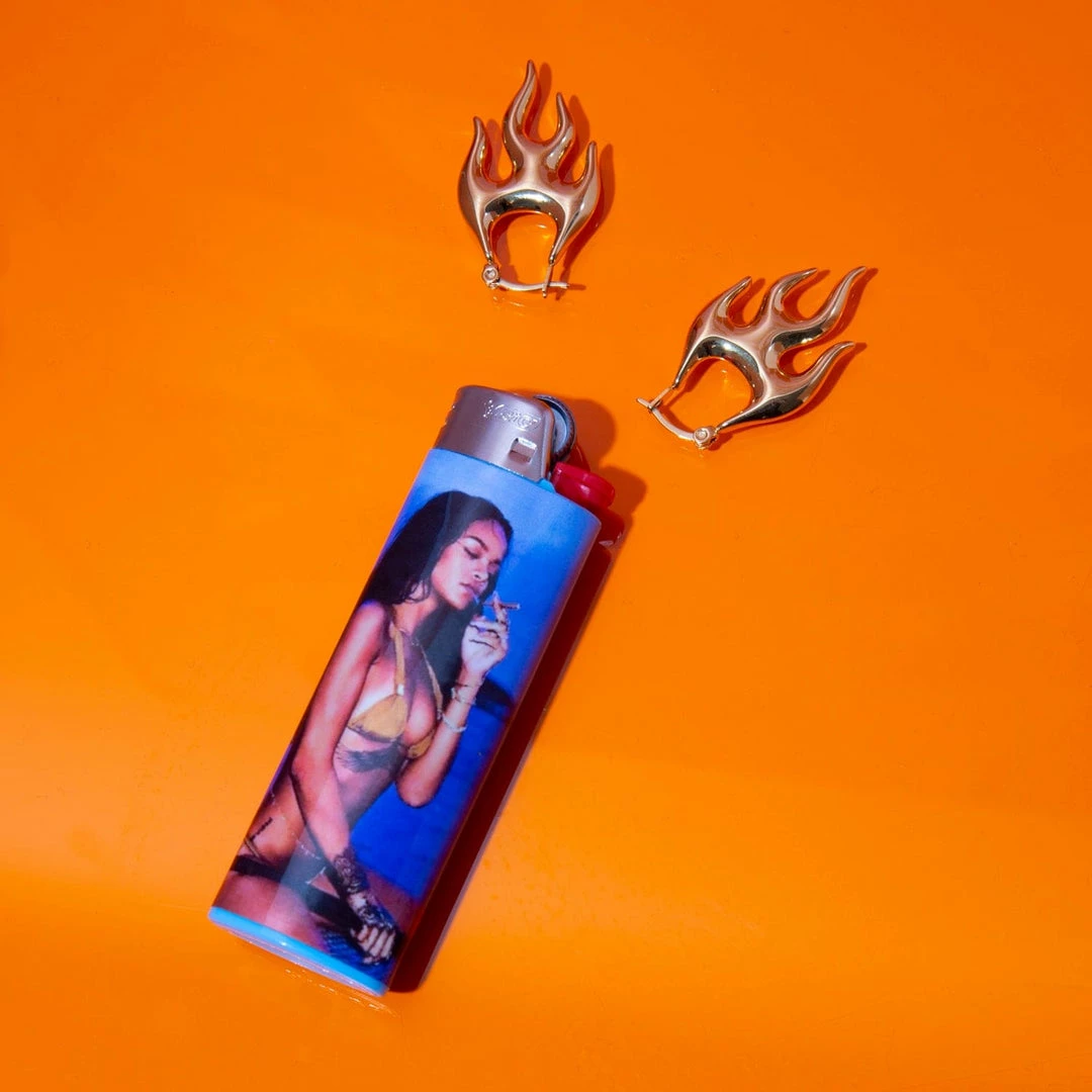 *Travis Scott voice* “It’s lit!” These spicyย gold drop earringsย will heat up any outfit. Wear them alone as statement earrings, or pair them with your favorite everyday jewelry.ย