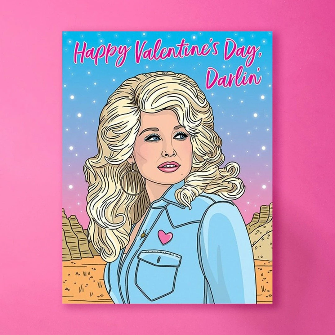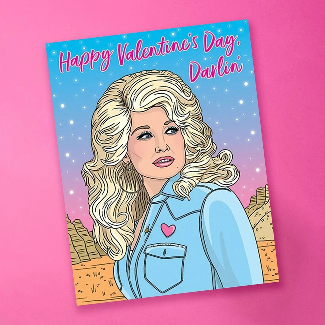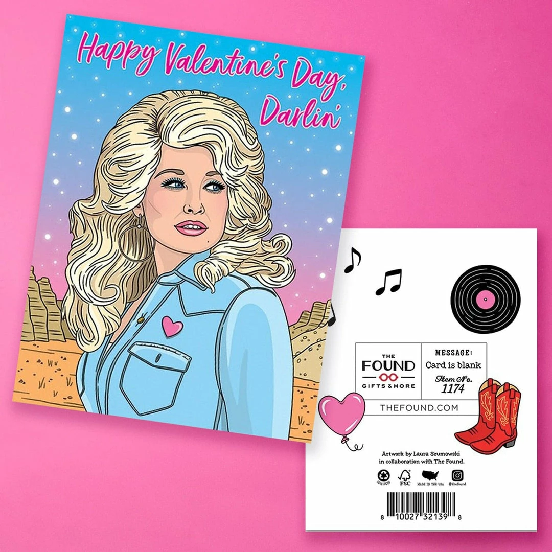 Have the lovely icon, Dolly Parton, help you celebrate Valentine’s Day this year! We swear we can hear Dolly’s twang when reading the front of card, “Happy Valentine’s Day Darling!”ย Customize with a heartful message on inside the card.