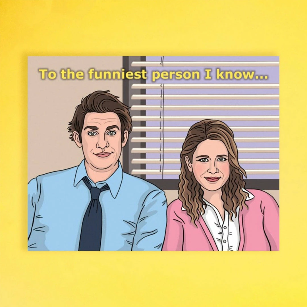 Extreme relationship goals. Get this romantic(ish) Valentine’s Day greeting card for the Jim to your Pam — or vice versa — or the biggest The Office fan you know. We love the back of card details like the Secret Santa tea pot, Pam’s favorite desk accessory (pencil cups), and assumably Pam’s Best Sneakers Dundie Award.