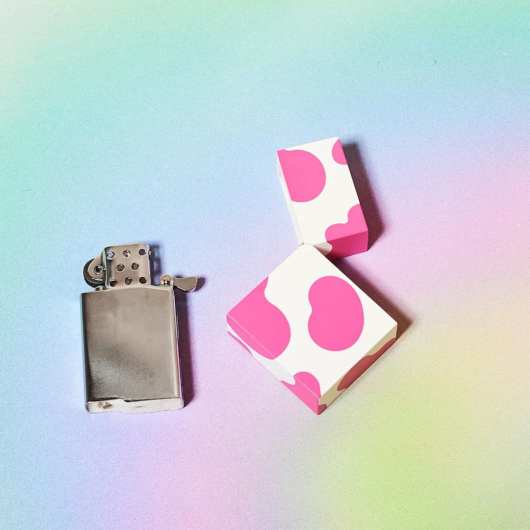 Instant MOO-d lifter in lighter form. Upgrade from your disposable lighter with a fun and ultra functional reusable cow print lighter – available in traditional and pink! The sleek, refined, and utterly iconic Tsubota Pearl Hard Edge lighter will immediately elevate your surroundings. Bonus – just like a Zippo, Tsubota Pearl Hard Edge lighters stay lit until cap is replaced.