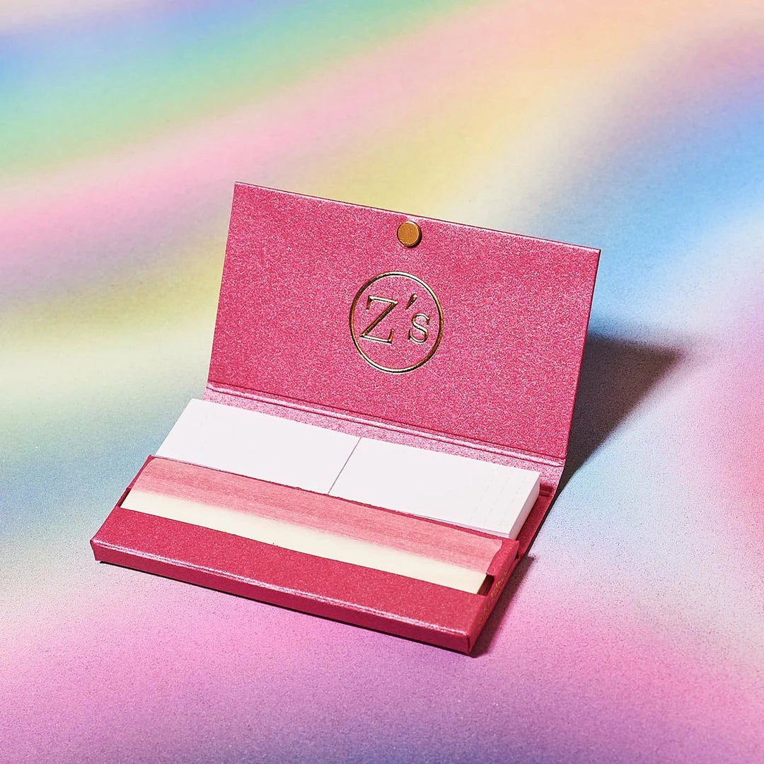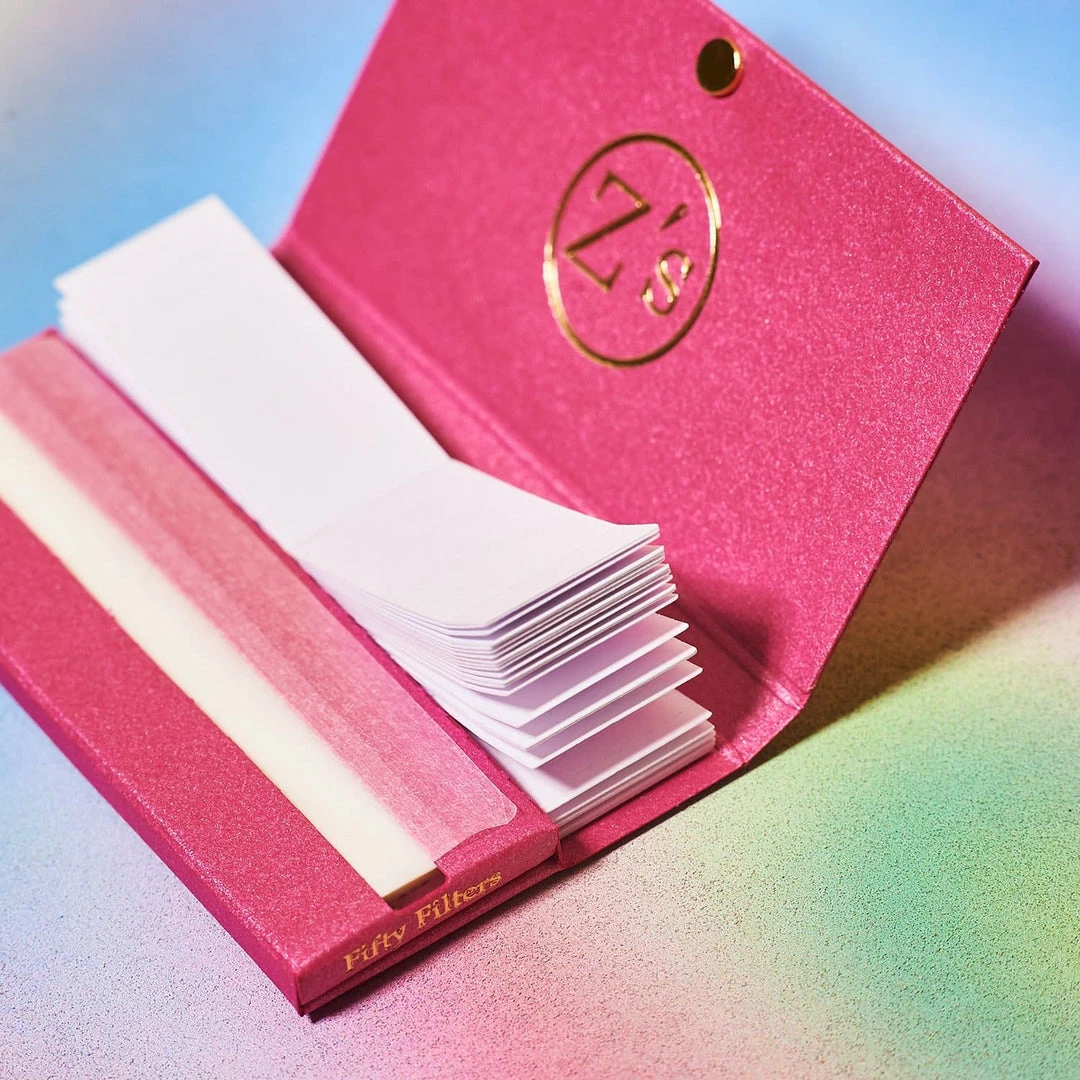 Talk about luxe! These ZBook premium flax rolling papers come in a variety of different color books, including pearlescent magenta and silver. With the high design ZBook, you get 50 papers, 50 filters, and a gold magnetic closure.ย A set up ideal for the on the go summer vibe. Z’s Life rolling papers are slow burning, organic, and non-GMO.ย ย With no additives, you are guaranteed an even burn every time.